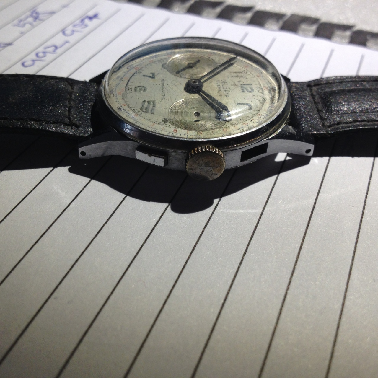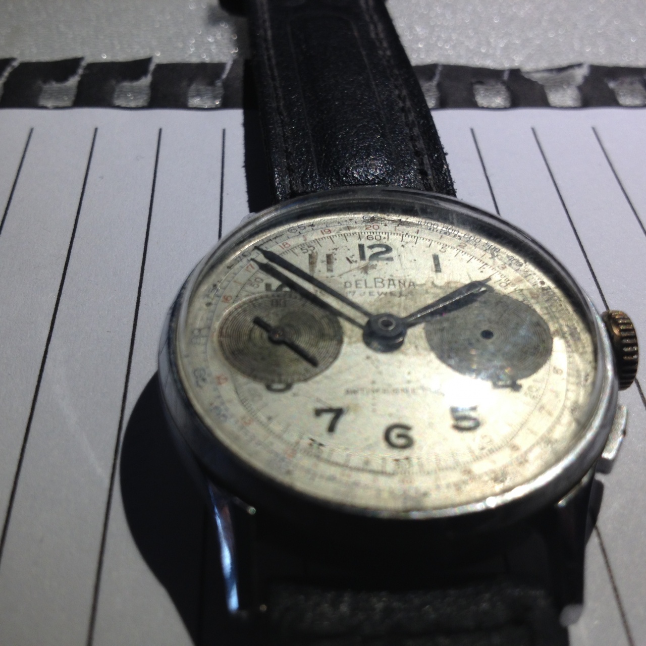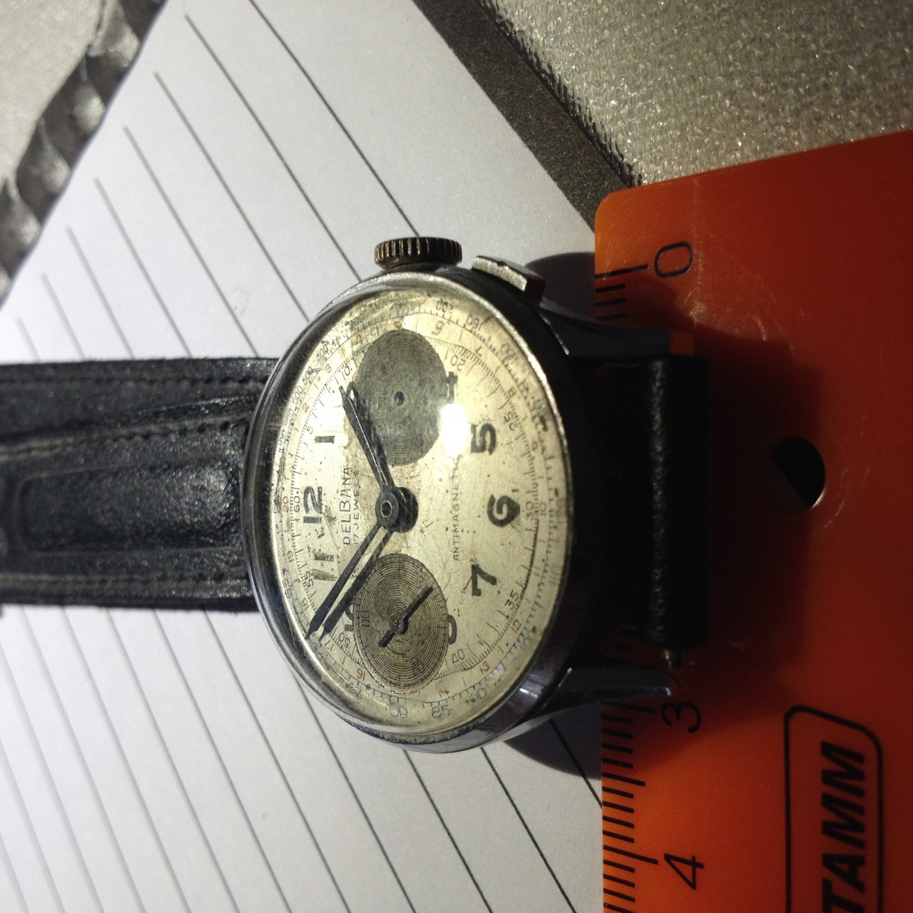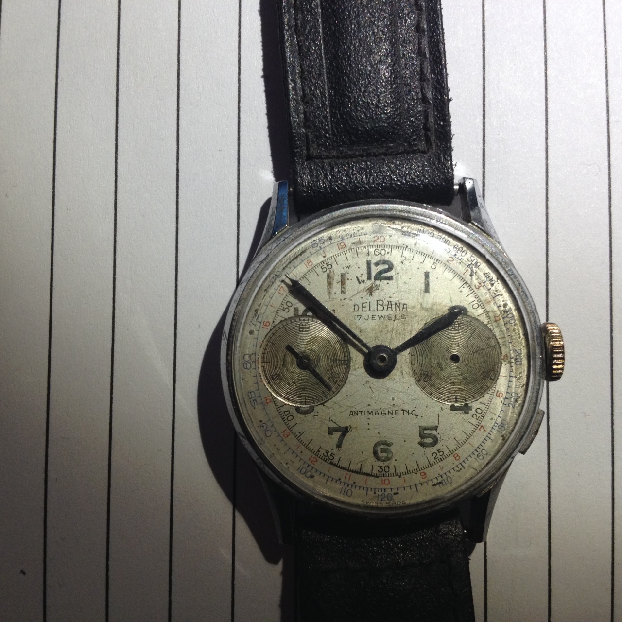 Обменяю Delbana на что нибудь стоящее, механическое, желательно без автоподзавода. Достались от товарища, по легенде после войны, были выменяны на что то в Чехословакии...год выпуска предположительно 37... Отсутствует одна кнопка и стрелка...не на ходу...но чувствуется - динозавр ЖИВ!