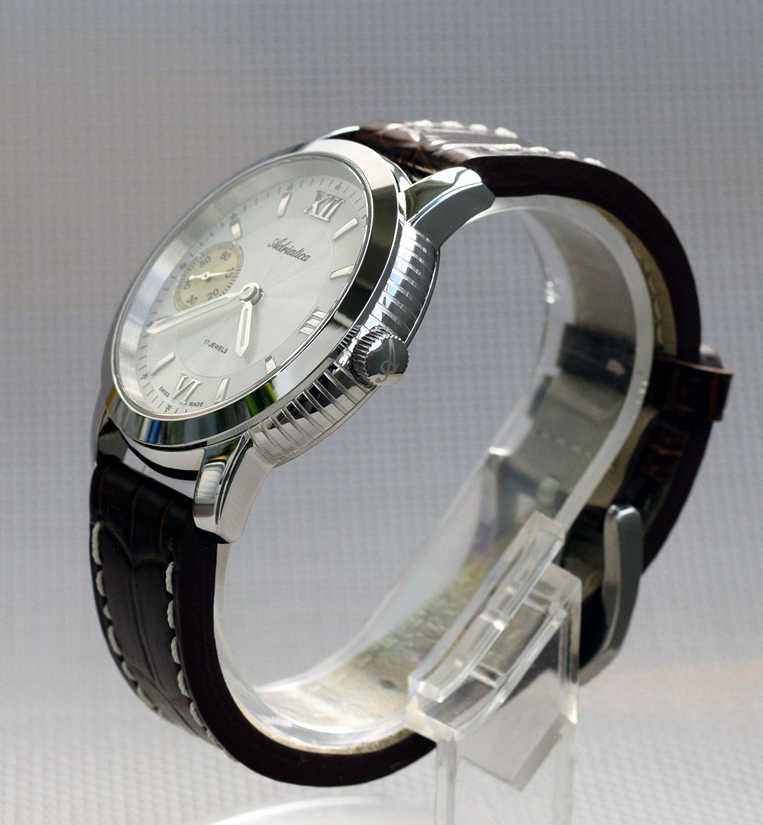 Очень красивые и качественные швейцарские часы на супернадёжном калибре Unitas 6497-2. Циферблат тонко гельоширован, стрелки с ярким люминофором, накладные цифры и индексы отполированы. Циферблат секундной стрелки позолочен. Толстое сапфировое стекло с внутренним антибликом. Практически в идеальном состоянии без каких-либо проблем на новом мягком кожаном ремне из воловьей кожи.