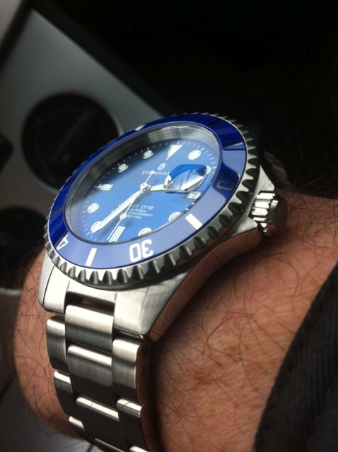 Все о том же собственно тема про жабу, которая как всегда начинает квакать в самый неподходящий момент! После продажи синего трехстрелочника Tissot Seastar 1000 освободилось место дайвера на лето. Так как лето кончилось, а отпуск неизвестно когда будет - самый раз повыбирать. Остановился на Rado d-200 3-стрелочник. И задумался. Синие, внутри рабочая безотказная ета-шка, КЕРАМИЧЕСКИЙ безель, браслет, узнаваемая модель (ну относительно узнаваемая, все же не diastar). Что еще такого есть? Упс: steinart ocean 1 premium blue , да еще какой! И почти в 2 раза дешевле! Нищеброды в душе обрадовались! Но ведь это watch.ru: "фу, нищеброд, на Ролик в белом золоте не хватило, теперь вот так себя успокаиваешь! Что люди скажут? Ужос какой - все Ролиководы Питера засмеют! А мог бы взять солидный бренд с собственным дизайном, гламурный весь такой, чтобы окружающие дамочки млели от удовольствия и не смотрели на твои ботинки и не спрашивали какая у тебя машина, потому как на метро ездишь " Не смотря на эти упреки, к хомажам отношусь спокойно, и другими штайнами владею. Забегая вперед скажу, что скорее всего вопрос бы решился покупкой синего Rado'вского хрона из той же коллекции - но, увы запястье 17-17,5. Хрон безбожно велик и от гламурного флера не остается и следа. Особняком стоят рядом и посмеиваются Citizen gran touring Sport automatic и JeanRichard Terrascope. Итак: что предпочесть в кризис: съэкономить или порадовать, ударив по бюджету Да, чуть не забыл: б/у акву и брайт супероушен мимо - не в бюджете