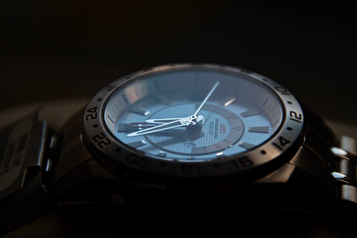 На мои взгляд и ощущение корпус и браслет очень здорово сделаны, со стрелками и метками немного сложнее: в подзорную трубу на них лучше всё же не смотреть, это правда не GS, шероховатости полировки всё-таки видны. Если честно, очень надеюсь, что это не относится к моему конкретному экземпляру, потому как нечто похожее видел и на увеличенных снимках других Аттес. Если не разглядывать макрофотографии в масштабе 1:1, всё замечательно, даже на приведённых снимках ничего такого не заметно, а ретушью я не занимаюсь...