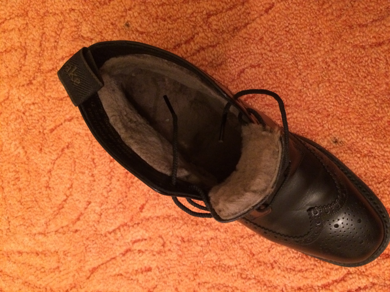 Компания Loake впервые произвела модель на меху. Loake Wolf Black — это полные броги, по-настоящему теплые и практичные. Они согреют в самые суровые русские морозы. Дополнительно поможет противостоять морозам английская подошва Dainite. Обувь изготовлена в Англии.