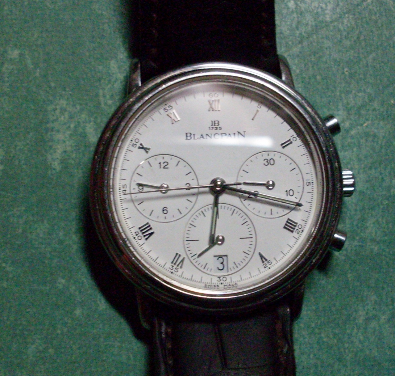 продам хронограф blancpain. Внутри не какая ни будь убогая эта. Механизм FREDERIC PIGUET. Номерные - лимитированная серия. Корпус нержавейка. Автоподзавод. Внешне без явных дефектов. На отличном ходу. В комплекте часы и родная застежка. Ремешок надо менять. Документов нет. Модель Blancpain Villeret Chronographe. Калибр внутрях ихний мануфактурный 1185.