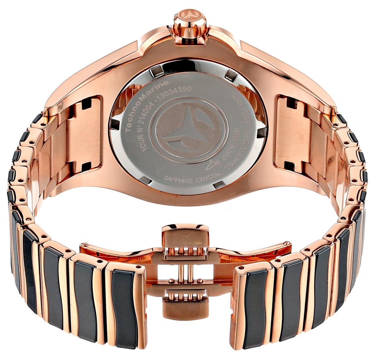 - Браслет стальной с золотым PVD и керамическими вставками, раскладная застежка