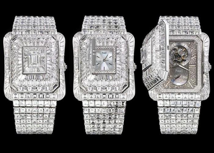 Второе место на сегодняшнем списке заняли часы, которые выглядят так, будто были созданы ребенком из осколков драгоценных камней, бисера, блесток и кучи клея. Модель «201 карат» швейцарского производителя роскошных часов Chopard полностью покрыта 201 каратами алмазов. В общей сложности часы усыпаны 874 бриллиантами всевозможных цветов и размеров, крупнейшим из которых является 15-каратный розовый бриллиант. Три самых крупных бриллианта в форме сердца связаны с пружинным механизмом, который «открывает» их, как лепестки цветка, чтобы показать циферблат.