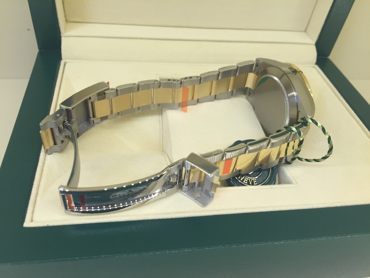 Корпус Oyster, 40 мм, сталь и желтое золото, Конструкция Oyster Цельный корпус, привинчиваемые крышка и заводная головка, Диаметр 40 мм, Материал Желтый Rolesor (сочетание стали 904L и 18-каратного желтого золота), Безель Фиксированный, с выгравированной тахиметрической шкалой, из 18-каратного желтого золота, Заводная головка Привинчиваемая, с системой тройной герметизации Triplock, Стекло Сапфировое, устойчивое к появлению царапин, Водонепроницаемость До 100 м, Механизм Perpetual, механический хронограф, автоматический подзавод, Калибр 4130, производство Rolex, Функции Центральные часовая, минутная и секундная стрелки, маленькая секундная стрелка в положении «6 часов». Хронограф с центральной стрелкой с точностью до 1/8 секунды, 30-минутный счетчик в положении «3 часа», 12-часовой счетчик в положении «9 часов». Возможность остановки секундной стрелки для выставления точного времени, Точность Сертификат COSC, Осциллятор Синяя парамагнитная спираль Parachrom, Завод часов Автоматический подзавод в двух направлениях с помощью ротора Perpetual, Браслет Oyster, плоские трехрядные звенья, Материал браслета Желтый Rolesor (сочетание стали 904L и 18-каратного желтого золота), Застежка безопасности Oysterlock с раскладывающейся пряжкой и удлиняющим до 5 мм звеном Easylink, Циферблат Чёрный, Детали Секундный счетчик со спиралевидным мотивом.