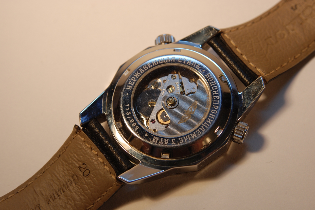 Механизм: Восток 2416B. Ходят точно, относятся к группе редко корректируемых часов. Прошли один репассаж. Поломок не припомню, если и было, то что-то незначительное. Честно скажу – калибром доволен, на таком у меня несколько часов. Кстати – ротор не гремит и не откручивается, сделано на совесть.