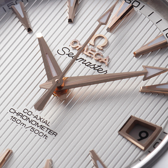 Эффектный, мгновенно узнаваемый дизайн циферблата, характерный для коллекции OMEGA Seamaster Aqua Terra 150M, напоминает тиковое покрытие роскошных яхт.