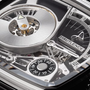 Мануфактурный механизм с ручным заводом, с прыгающей индикацией часов и ретроградной - минут, на 24 камнях, с частотой 21600 полуколебаний в час, отделкой Côtes de Genève, вручную скошенными мостами, индивидуальным номером и запасом хода 40 часов.