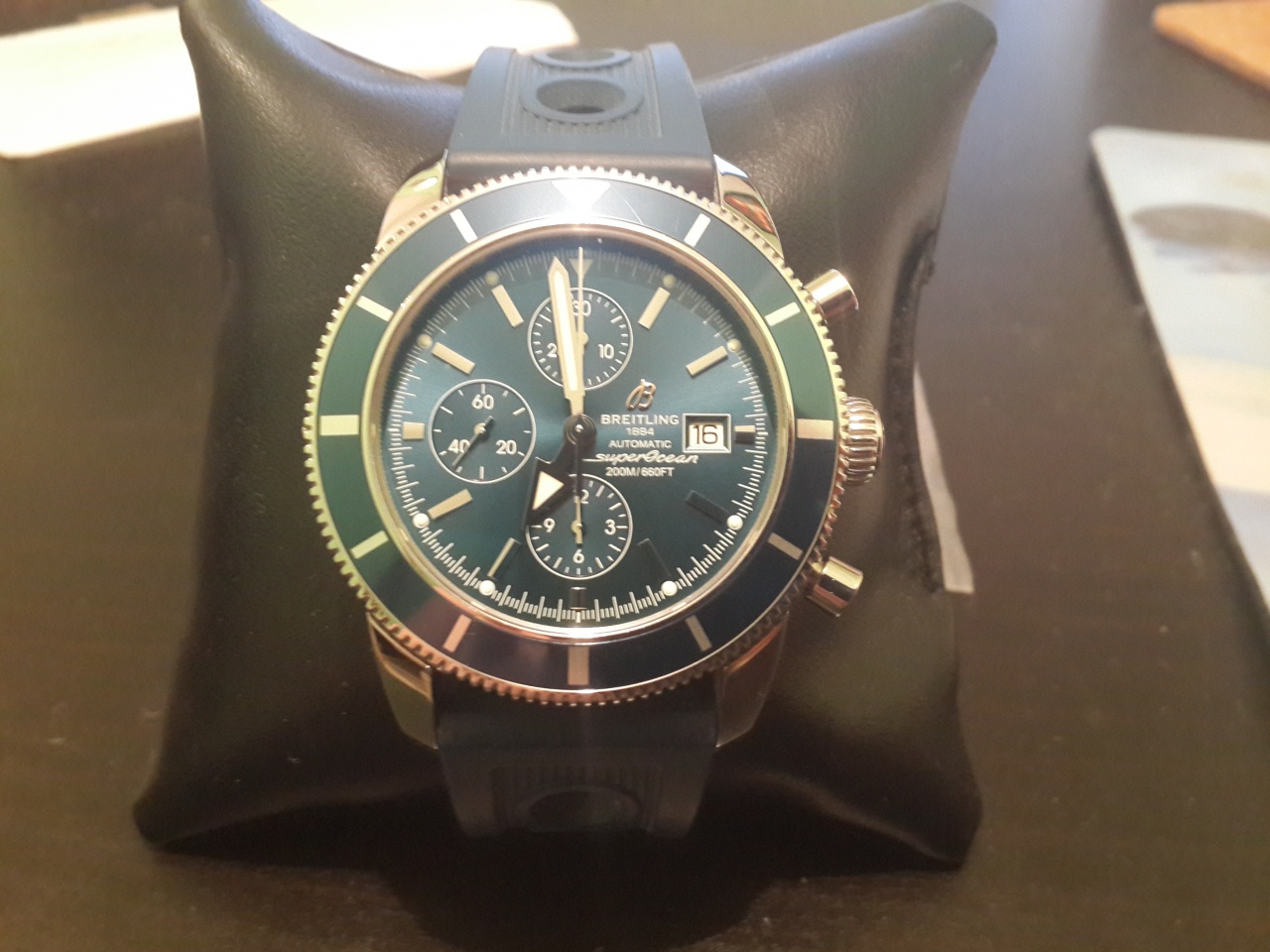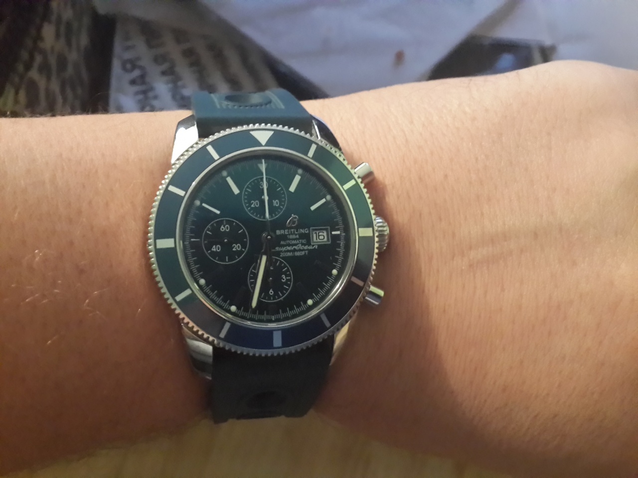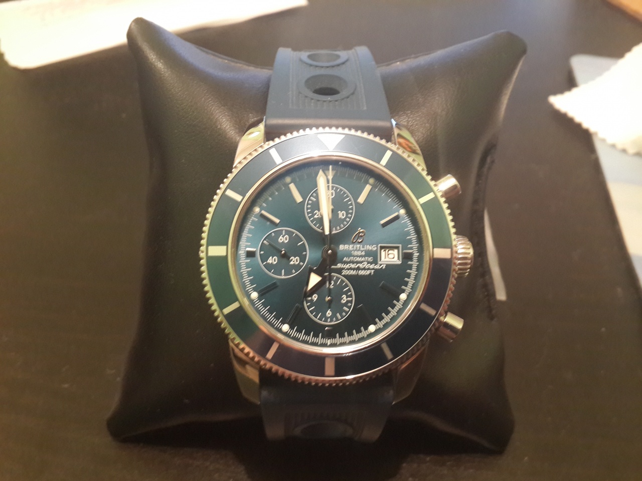 Добрый день, отдам в хорошие руки свои Breiling SuperOcean Heritage Chronograph 46 mm, синие на синем, на каучуковом браслете. Подарили в 2014 г. на День Рождения На руке смотрятся потрясающе, что под костюм, что под casual. На фото именно они. Делалась легкая предпродажная полировка. Состояние практически идеальное, цена 240 000 . (цена в бутике сейчас около 383 000 - 430 000 руб.) Жду Ваших предложений.