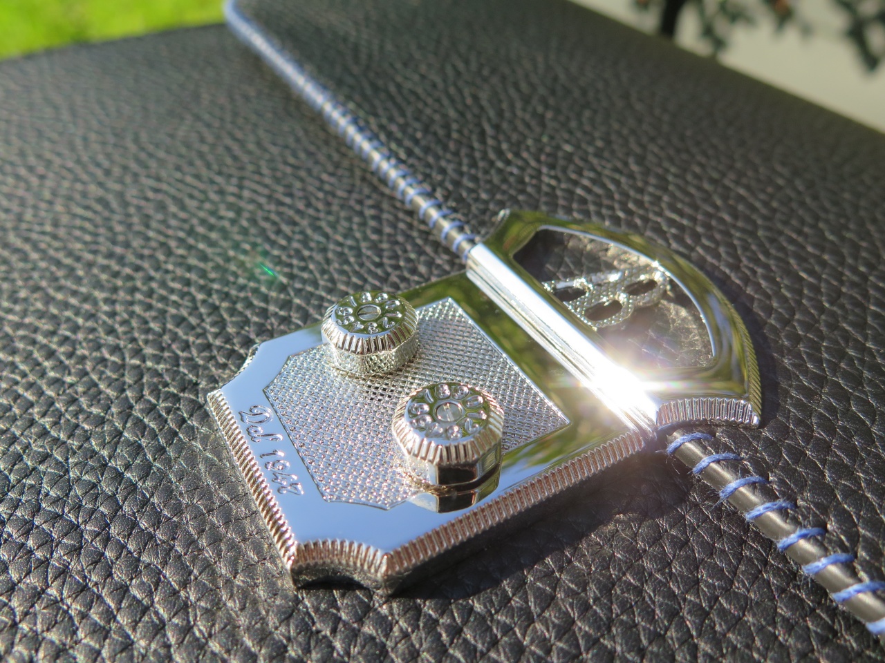Детали и декоративные элементы портфеля изготовлены из стали, покрытой палладием. Внутренняя часть портфеля изготовлена из 100% замши латиноамериканских пекари синего цвета, и имеет три больших отделения для переноски документов и прочих вещей, потайные отделения для переноски планшетных компьютеров типа iPad или компактных ноутбуков, хранения ценных бумаг или особо важных документов, одно дополнительное отделение, застегивающееся на молнию с бегунком, и кармашки для хранения 3 ручек, смартфона, визитных карточек, изготовленные из буйволиной кожи.