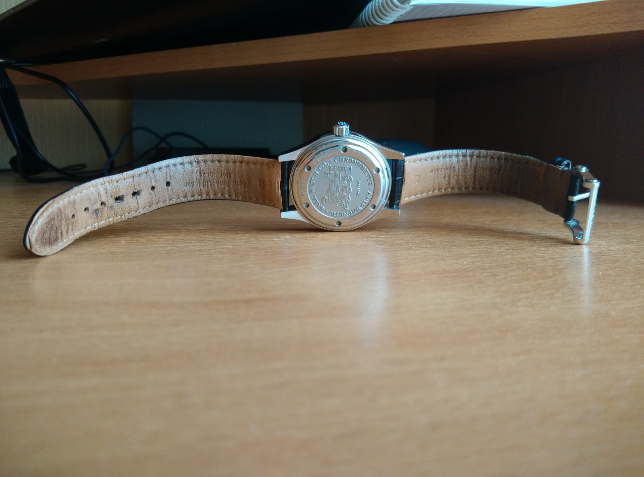 Состояние корпуса АА. Покупал летом 2014 года на форуме. Носил аккуратно, что видно по состоянию корпуса часов на фото. Ремешок по неведомым мне причинам поизносился сильнее. По-хорошему, его стоит заменить. Только из-за ремешка состояние указано как B.