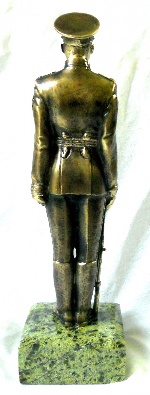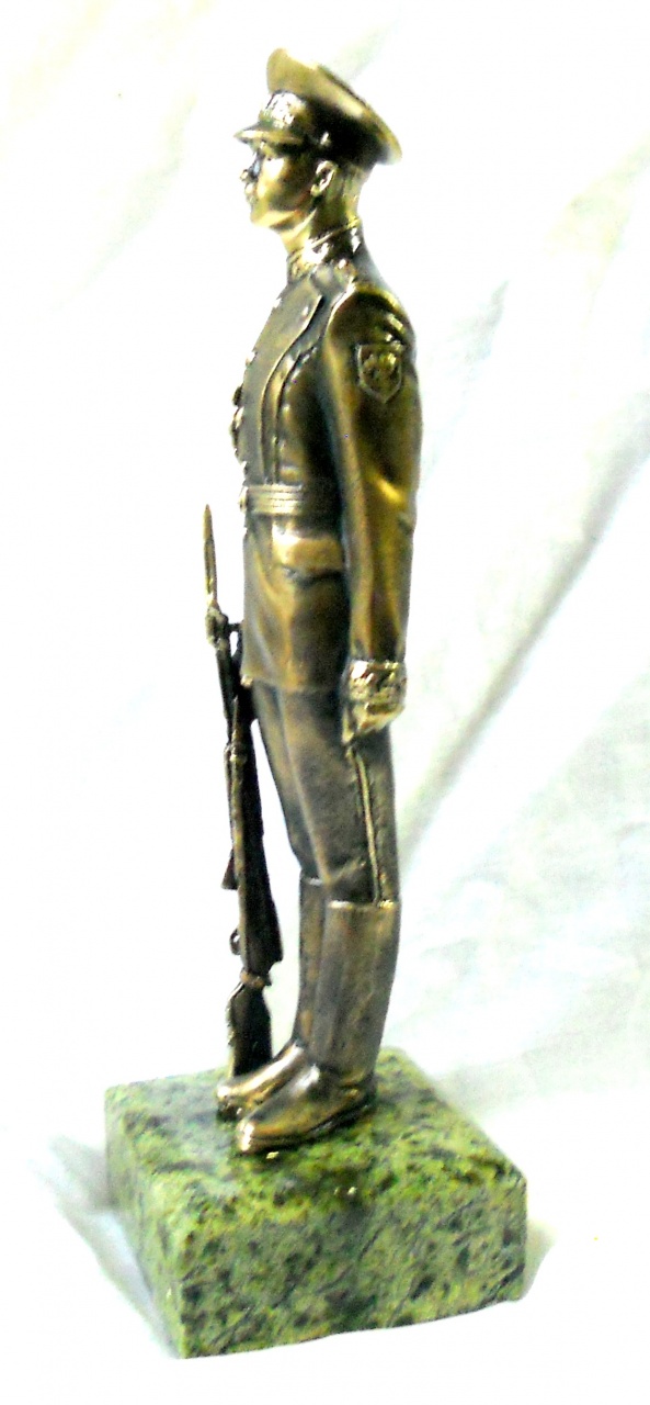 Представляю Вашему вниманию оригинальную статуэтку «Солдат роты «Почетного караула»» в положении «к ноге», материал «Бронза», высота 20 см. Подставка выполнена из натурального материала камень «Змеевик», высота 3 см.
