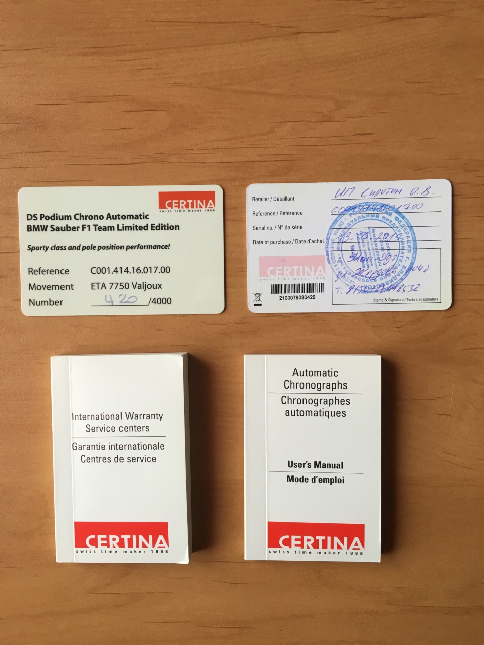 В течение последних пяти лет компания Certina реализует свои амбиции на гоночных трассах Формулы 1 совместно с командой BMW Sauber. Это сотрудничество воплощает идеальное совпадение философий двух команд, в основе которых общие ценности: динамизм, высокая требовательность к себе и многочисленные ноу-хау. Компания Certina решила ознаменовать это плодотворное сотрудничество выпуском новой модели DS Podium BMW Sauber F1 Team Limited Edition — хронографа, выполненного в официальных цветах команды. Выпущенные номерной серией в 4 000 штук, каждые часы снабжены высококлассным автоматическим механизмом Valjoux с оригинальной гравировкой и предназначены, прежде всего, преданным и страстным поклонникам мотоспорта.