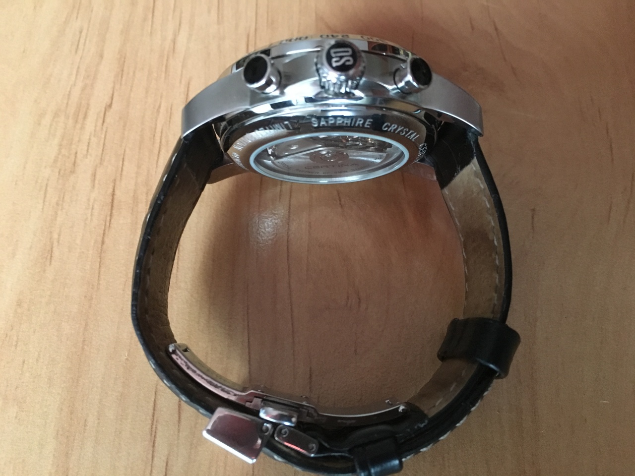 Задняя крышка из минерального стекла, на механизме автоподзавода гравировка: «Certina Official Partner of BMW Sauber F1 Team», на задней крышке выгравирован серийный номер