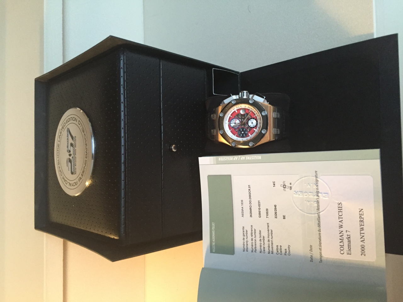 Продаю часы из лимитированной коллекции Audemars Piguet, выпущенной количеством 257 штук в честь победы известного гонщика Р. Барикелло на Формула 1.