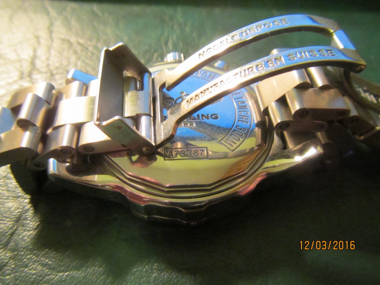 Из дефектов - легкая царапка на безеле в районе пол шестого (видна на фото), потертость застежки браслета.