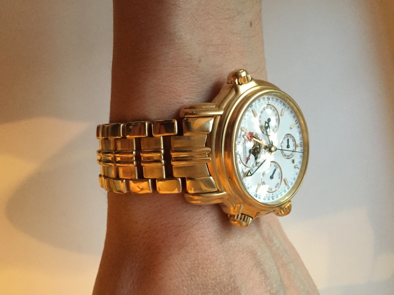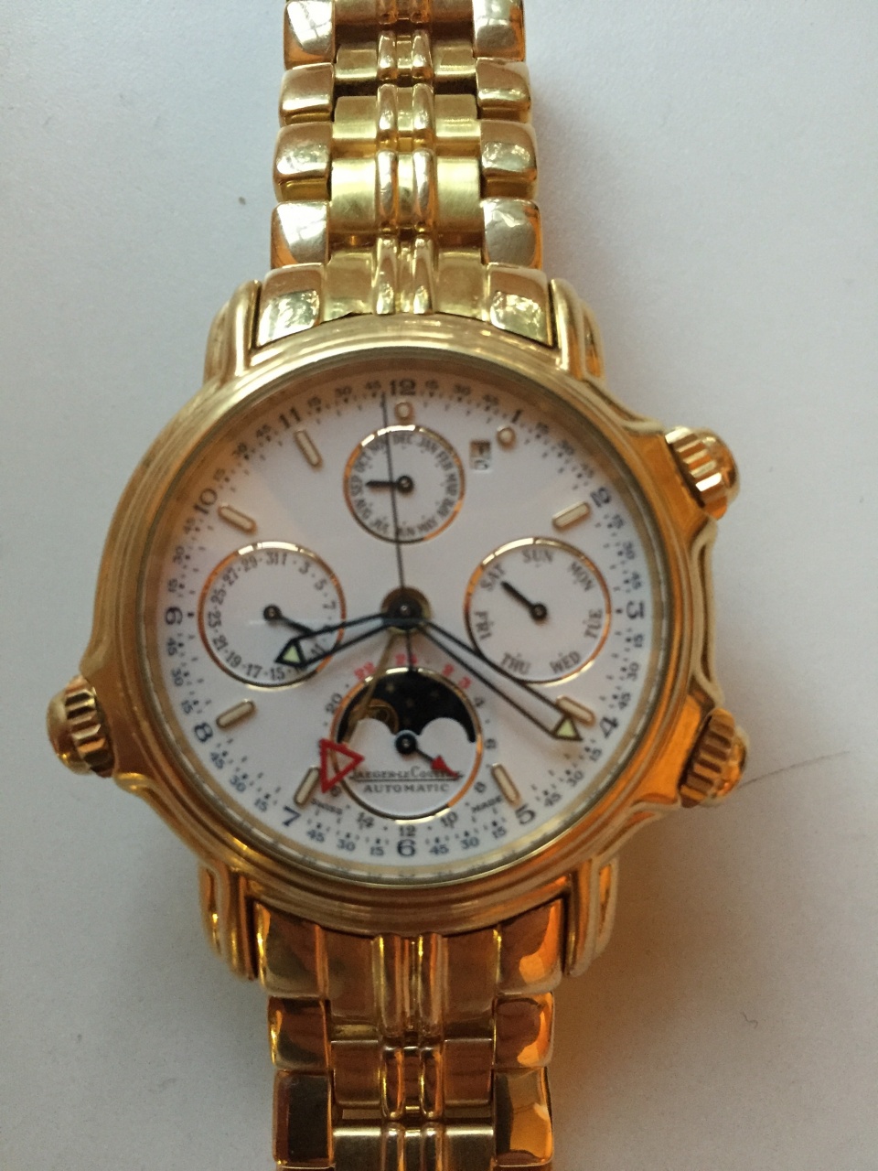 золотой Jaeger LeCoultre 41мм с вечником и будильником на браслете