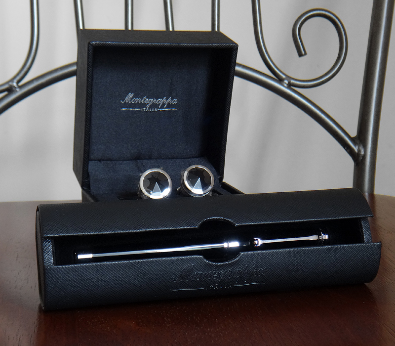 Montegrappa мужской комплект ручка-роллер и запонки с ониксом