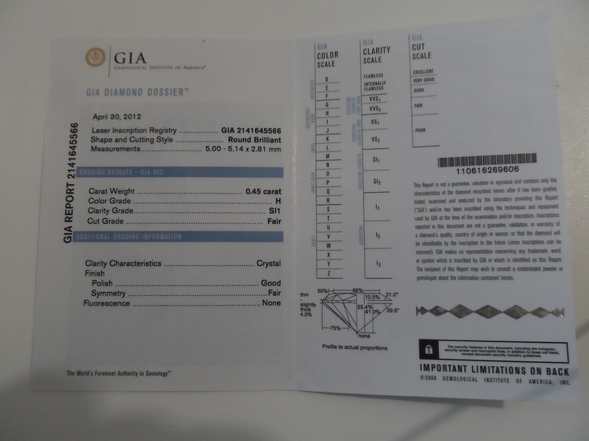 Зол. кольцо с брил. 0.97 к. GIA L/VS1