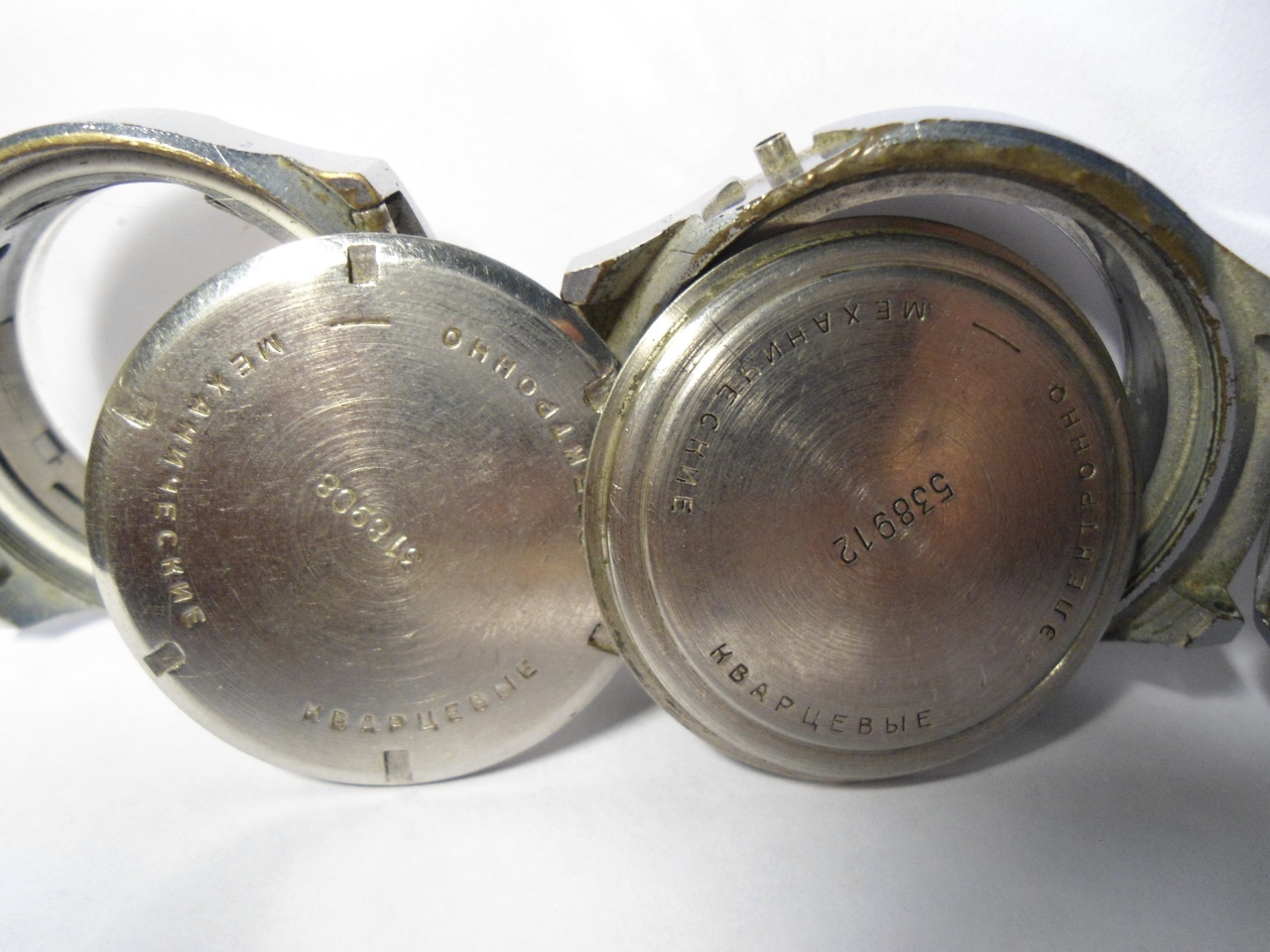 один из которых (не помню какой, но какой-то из тех что с батарейкой) был ходячий, но не обслуживался. В довесок пара крышек и три корпуса с утратой покрытия, один из которых без стекла.