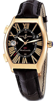 Тип механизма: механические с автоподзаводом и запасом энергии на 42 часа. Калибр: un-22. Корпус: розовое золото 18 карат (38 x 43мм) . Циферблат: черный циферблат. Браслет: кожаный ремешок с раскладывающимся замком. Стекло: сапфировое. Водозащита: 50м. Технические особенности: Двойное окошко даты. Завинчивающаяся заводная головка. GIGANT UTC DUAL TIME, собраны и гравируются в ручную.