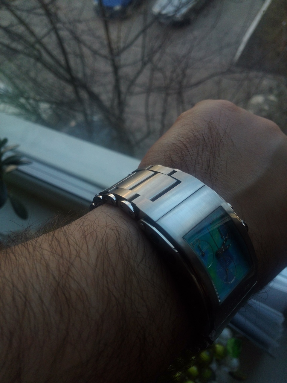 Оооочень крутые и необычные часы.. на руке смотрятся как какой-то браслет из фантастических фильмов про будущее. при этом часы выглядят достаточно дерзко и брутально.