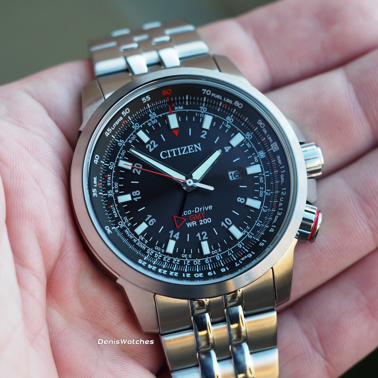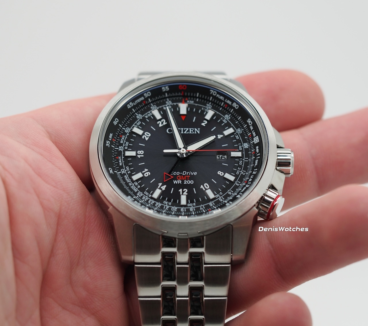 Крупный стальной CITIZEN в авиационном стиле с хорошей водозащитой и функцией GMT из серии Promaster!