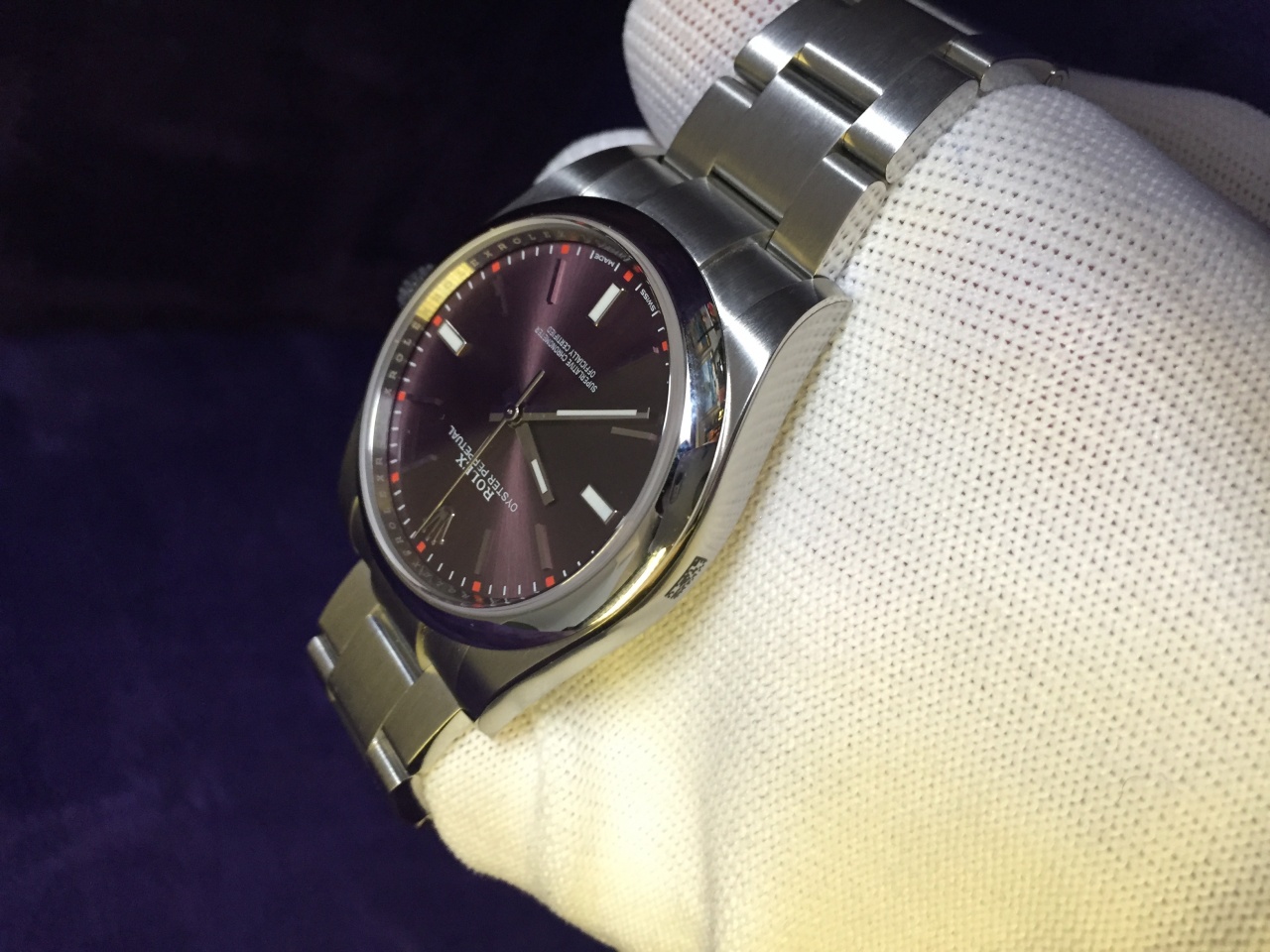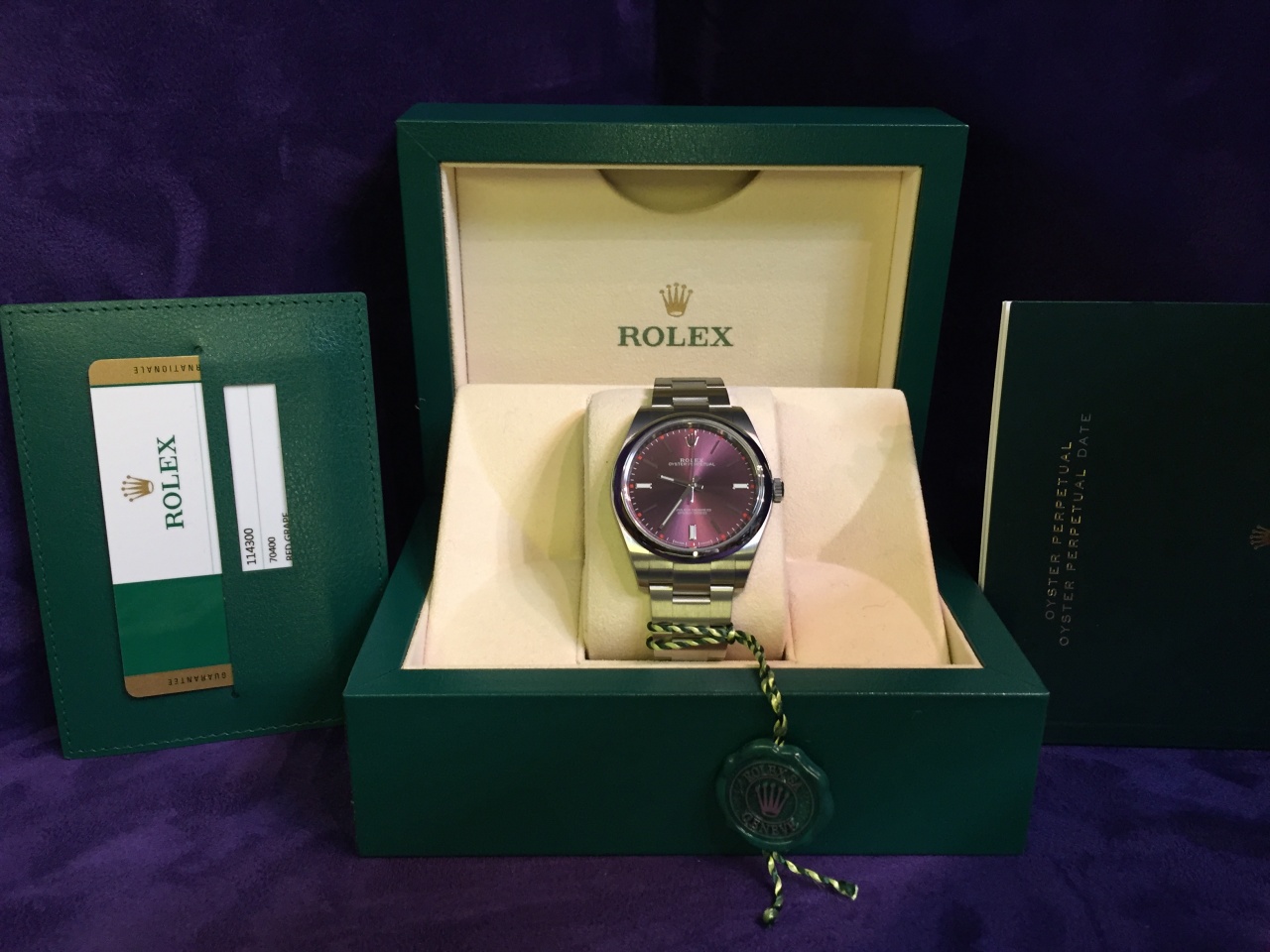 КОРПУС Oyster, 39 мм, сталь, КОНСТРУКЦИЯ OYSTER Цельный корпус, привинчиваемые крышка и заводная головка, ДИАМЕТР 39 мм, МАТЕРИАЛ Сталь 904L, БЕЗЕЛЬ Выпуклый, ЗАВОДНАЯ ГОЛОВКА Привинчиваемая, с системой двойной герметизации Twinlock, СТЕКЛО Сапфировое, устойчивое к появлению царапин, ВОДОНЕПРОНИЦАЕМОСТЬ До 100 м, МЕХАНИЗМ Perpetual, автоматический подзавод, КАЛИБР 3132, мануфактурного производства Rolex, ФУНКЦИИ Центральные часовая, минутная и секундная стрелки. Возможность остановки секундной стрелки для выставления точного времени, ОСЦИЛЛЯТОР Синяя парамагнитная спираль Parachrom. Эффективная противоударная система Paraflex, ЗАВОД ЧАСОВ Автоматический подзавод в двух направлениях с помощью ротора Perpetual, БРАСЛЕТ Oyster, плоские трехрядные звенья, МАТЕРИАЛ БРАСЛЕТА Сталь 904L, ЗАСТЕЖКА Застежка Oysterclasp, ЦИФЕРБЛАТ Red Grape (красный виноград), СЕРТИФИКАЦИЯ Сверхточный хронометр (COSC + сертификация Rolex после установки механизма в корпус)