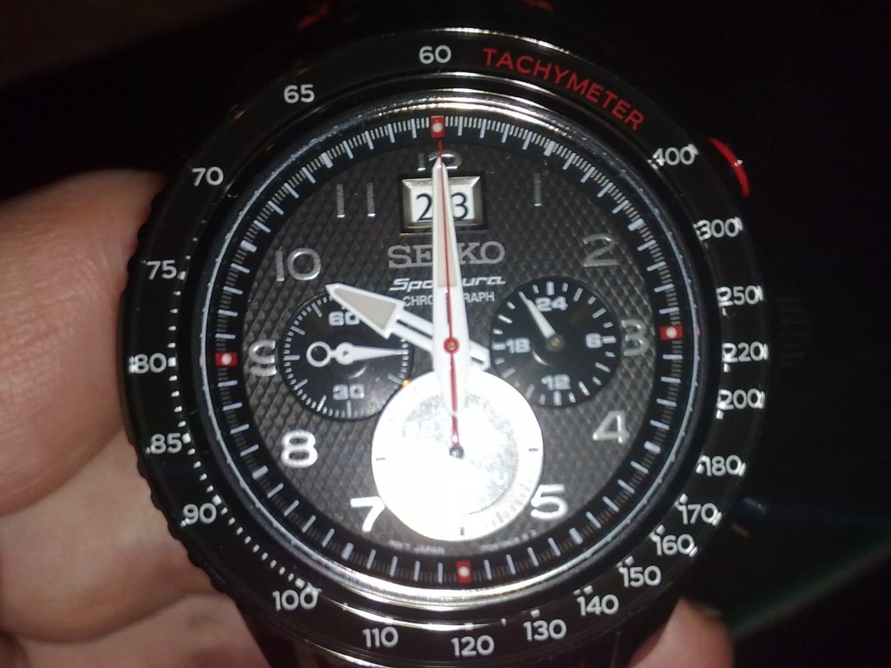 Часы-хронограф с секундомером и тахиметром.