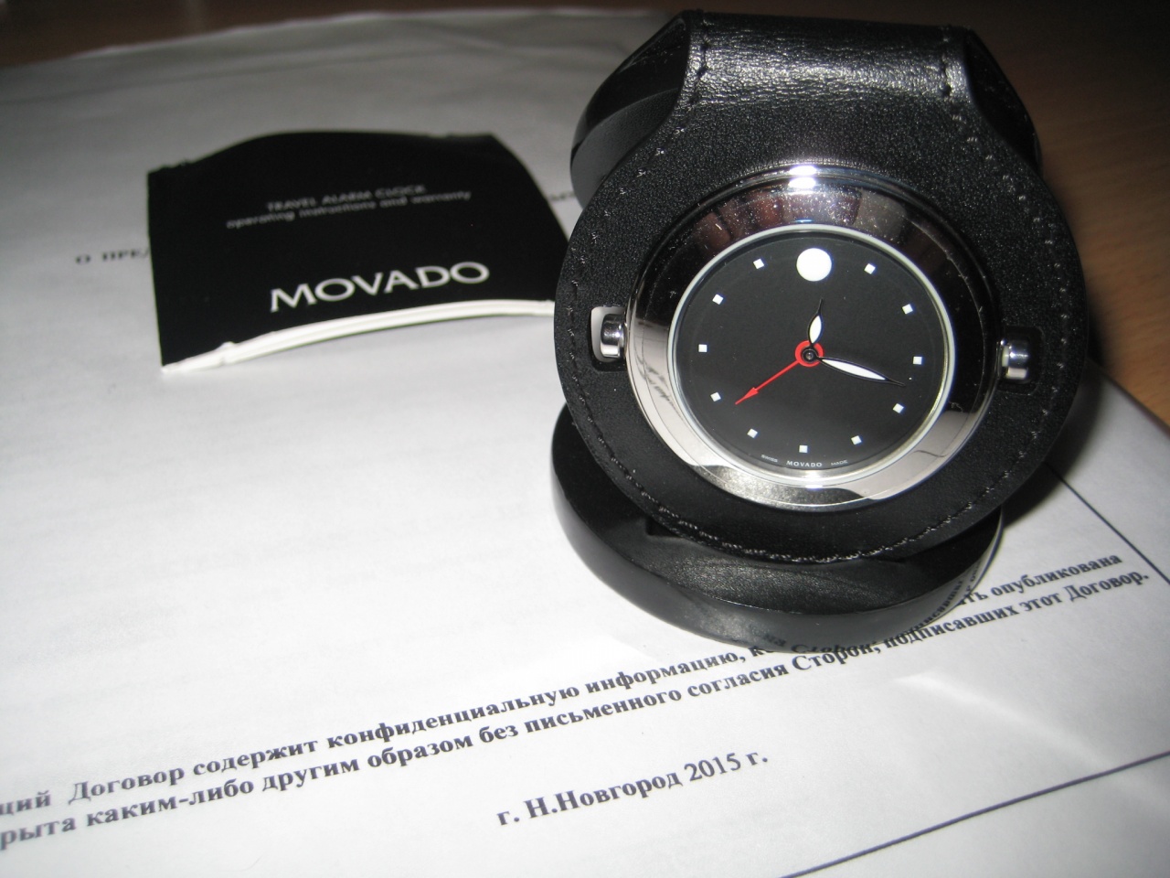 Стильные карманные часы с будильником в кожаном футляре Movado Travel Pocket Alarm