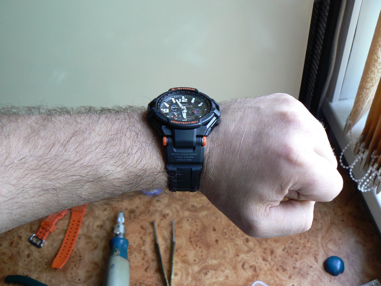 Изначально они идут с оранжевым ремнем. Сами часы понравились дизайном, а вот ремень ядовито-рыжий (ИМХО) им не шел. Заморочился и заказал оригинал, стало на много интереснее и серьезнее что ли. Получение ремешка и отчет о замене тут, и тема полностью про эти часы, пост 357 и 360