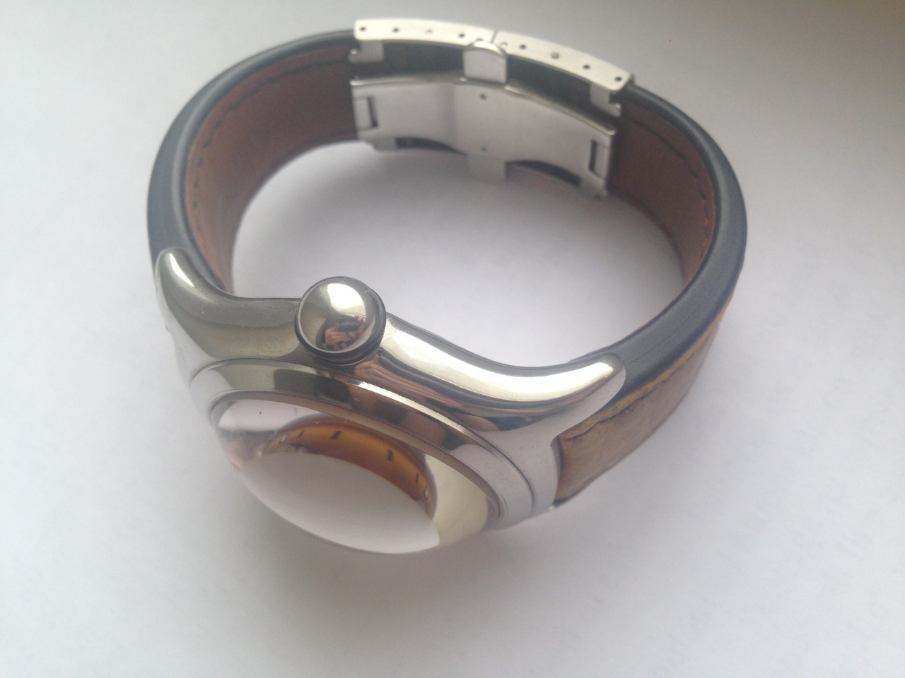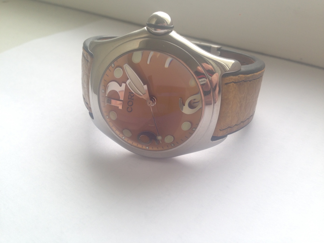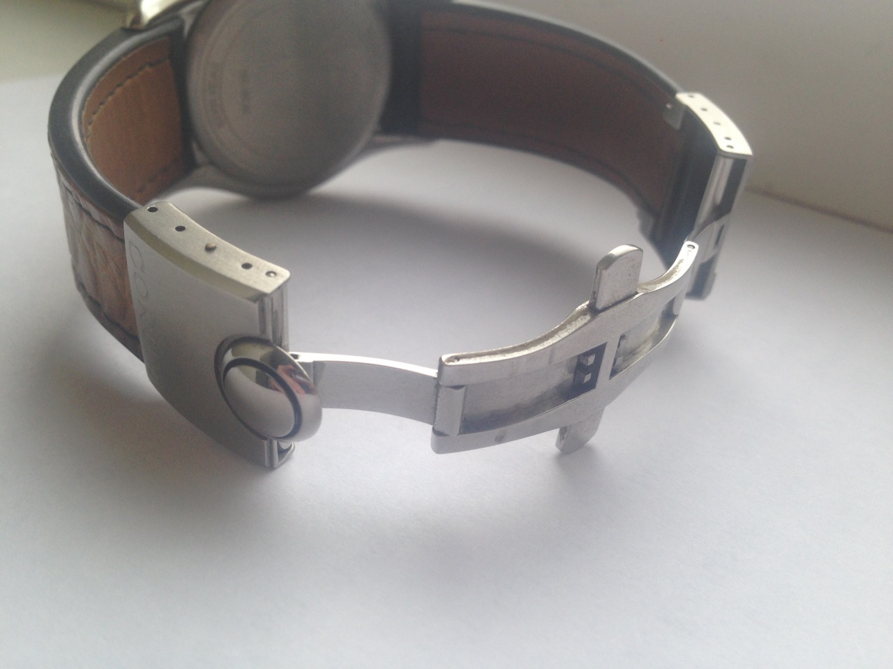 Часы в хорошем состоянии, имеются царапины на застёжке, очень мелкие на корпусе - от повседневной носки. Присутствуют царапины на задней крышке(последнее фото), сделанные "умелыми мастерами", которые меняли батарейку по просьбе предыдущего владельца. Ремешок не в идеальном состоянии, опять же, из-за повседневной носки, внутренняя кожаная часть ремешка перешивалась предыдущим владельцем, наружняя кожа немного потемнела, постарался передать это на фото.