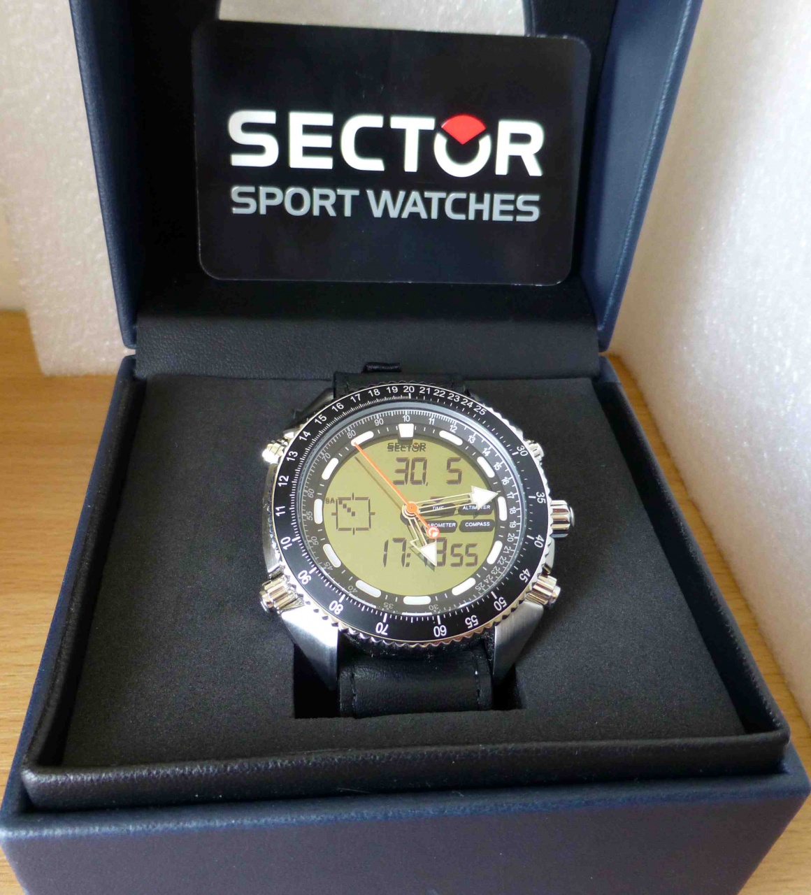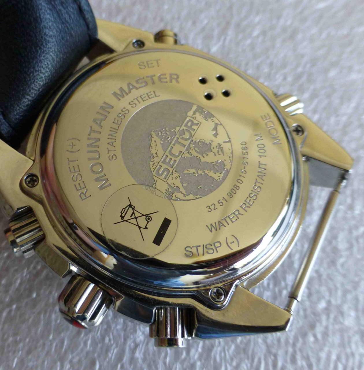 Все функции, связанные с погодой, высотой, направлением и тп отображаются на графическом жидкокристаллическом индикаторе, который интегрирован в циферблат. Одно нажатие кнопки - и навороченные навигационные часы превращаются в элегантный трехстрелочник, который можно одеть под костюм. Кроме Sector Mountain Master, всего лишь еще двум фирмам удалось совместить ABC-часы и классический стрелочный дизайн - это Tissot T-touch и Swiss Military Hanowa Highlander (обе модели стоят боле 600 евро). Данная модель Sector достаточно редкая, ее тяжело встретить на вторичном рынке.