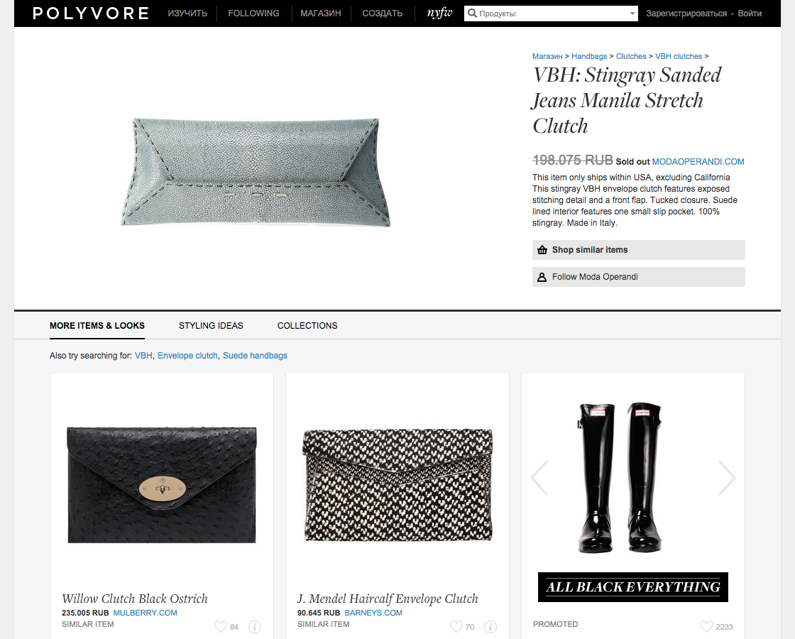 Цена магазина на клатчи этой серии $1650 (127.900 руб) - $2550 (198.000 руб).