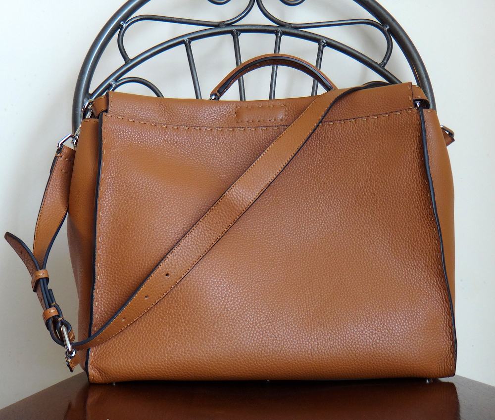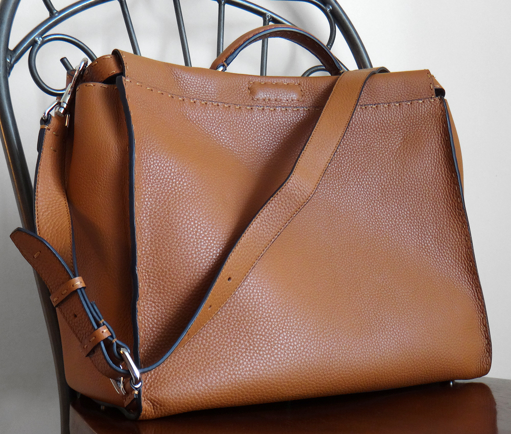 Естественно, сумка изготавливается из самой лучшей и дорогой кожи, которую делают Fendi - Selleria. Каждый кусок кожи отбирается и обрабатывается вручную, процесс дубления осуществляется исключительно растительными компонентами по старинным рецептам. Это знаменитая зернистая кожа, заслуженно одна из лучших в мире по качеству выделки, с которой могут сравниться только кожи от Hermes.