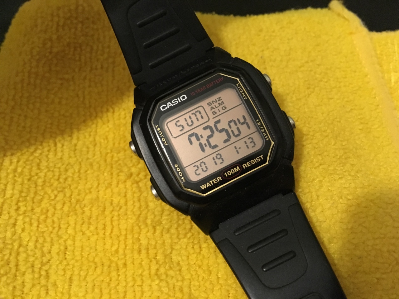 Армия. В армии с её распорядком и дисциплиной очень важно контролировать каждую минуту. До призыва свои Tissot носил всегда и везде. Но подвергать классического «швейцарца» повышенным нагрузкам не решился. Да и банально могли украсть дорогой моему сердцу подарок родителей. Начал изучать варианты. Увы, отыскать бывшие у меня водонепроницаемые Интегралы не смог, куда-то потерялись при переезде. Не нашлись они на тот момент и в продаже (искал в ГУМе, в ЦУМе, в магазине «Электроника», что на Логойском тракте, и, собственно, в магазине самого Интеграла на улице Казинца). Пришлось расширить поиски. Так я и обратил внимание на часы бренда Casio. Нет, это были не G-Shock. О «Шоках» был наслышан, отлично зарекомендовавшие себя модели, но не совсем подходили под требование «недорогие» (не забываем про факты воровства в нашей армии, которые, увы, случаются). Более доступным вариантом выступила модель Illuminator W-800H, она то и сопровождала меня весь год «тягот и лишений».