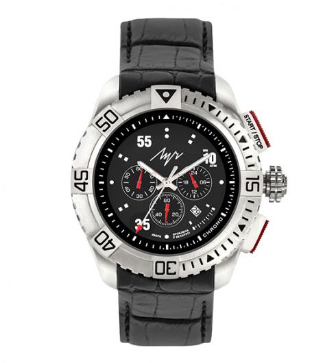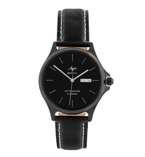 Под определение «классика с нотками современности» неплохо подходят часы из коллекции Эго. Я примерял модель с названием «Брутал», красивые черные часы. Если честно, я их почти готов был приобрести. Дизайн, размер, качество черного кожаного ремешка, черное покрытие стального корпуса, черный цифер, сапфировое стекло с антибликом… И это механика! Точнее, бюджетная механика с автоподзаводом Miyota 82** (Луч даёт ей какое-то свое обозначение). Это немного и смутило. Точность хода меня вряд ли устроит, ещё отсутствовала хоть какая-то водозащита. К тому же чересчур минималистичное оформление не способствовало быстрому считыванию показаний. Увы, пришлось подавить в себе душевный порыв, хотя часы правда понравились.