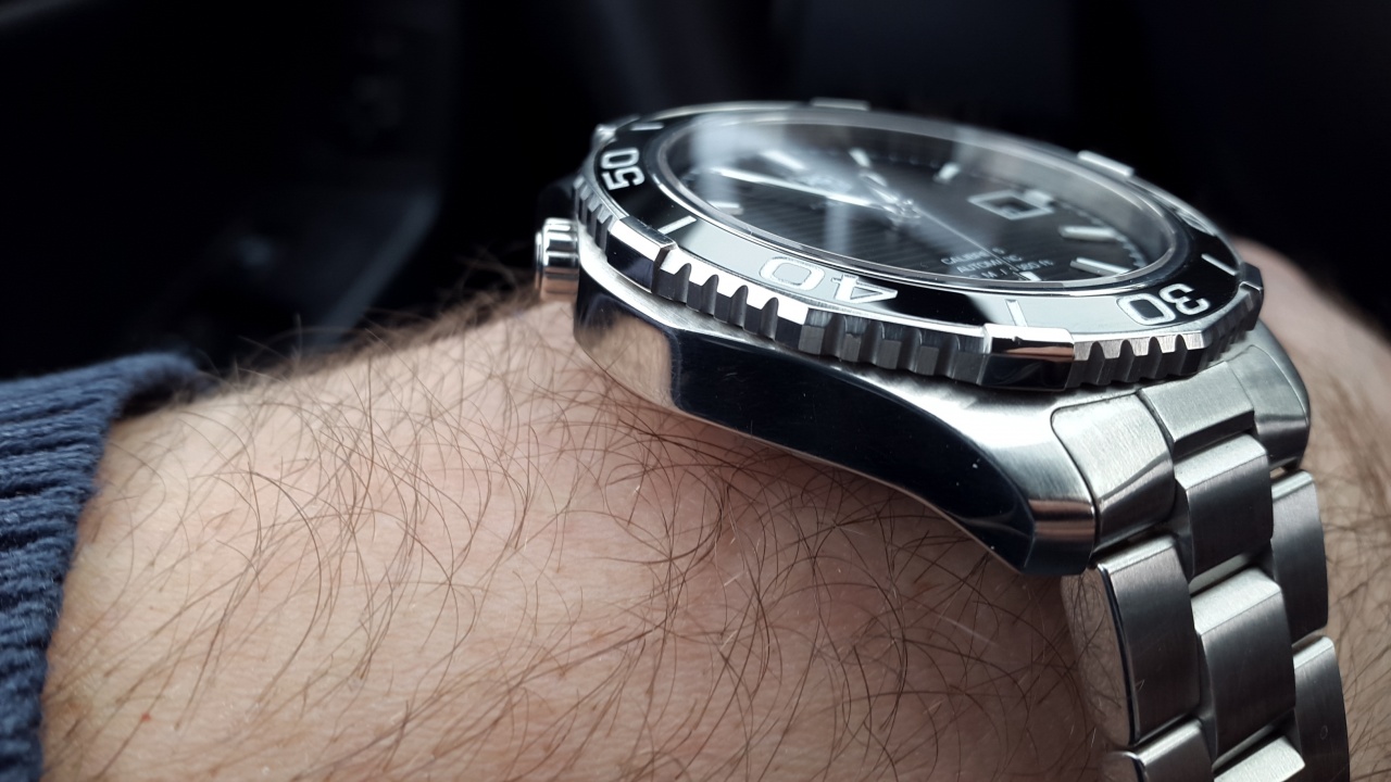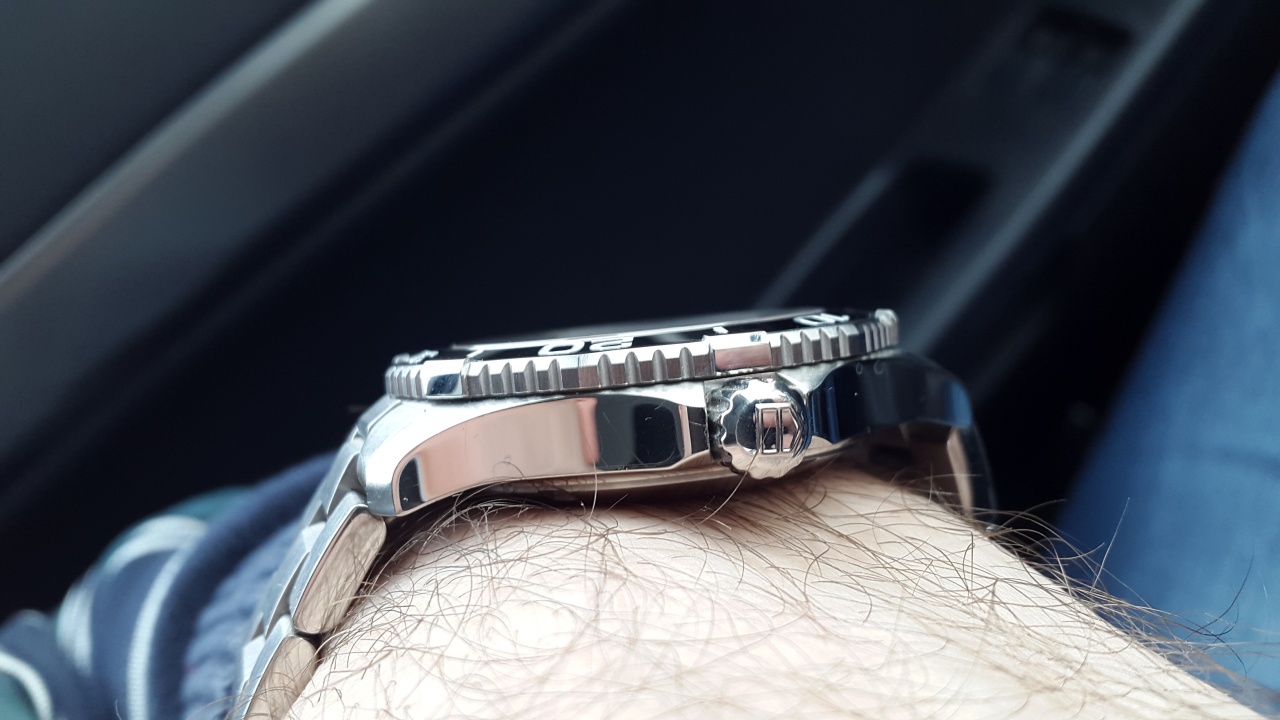 Продаю самый красивый и универсальный механический акварейсер в коллекции, с керамическим безелем и красивым гильоше на цифере. Покупался в Консуле в Питере в декабре 2014 года, еще 10 месяцев гарантии. Отличное состояние видно по фото, есть следы от естественной носки на застежке браслета. Браслет укорочен на запястье 17 см, дополнительные звенья естественно в комплекте. Комплект полный (коробка + бумаги+ гарантийная карта и чек)