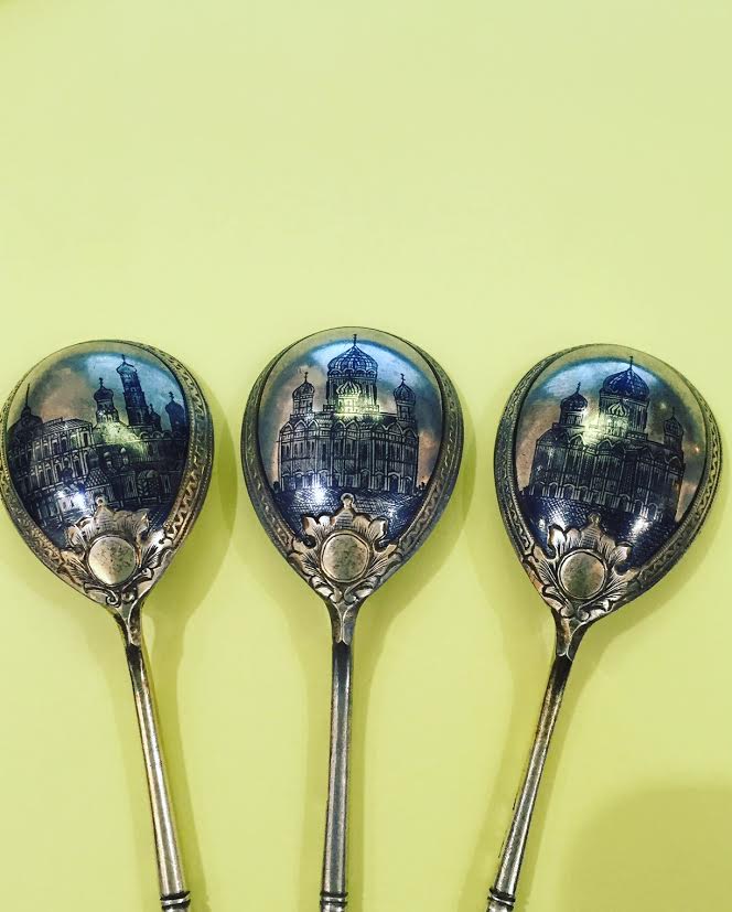 Набор серебряных чайных ложек на 6 персон. "Виды Кремля".