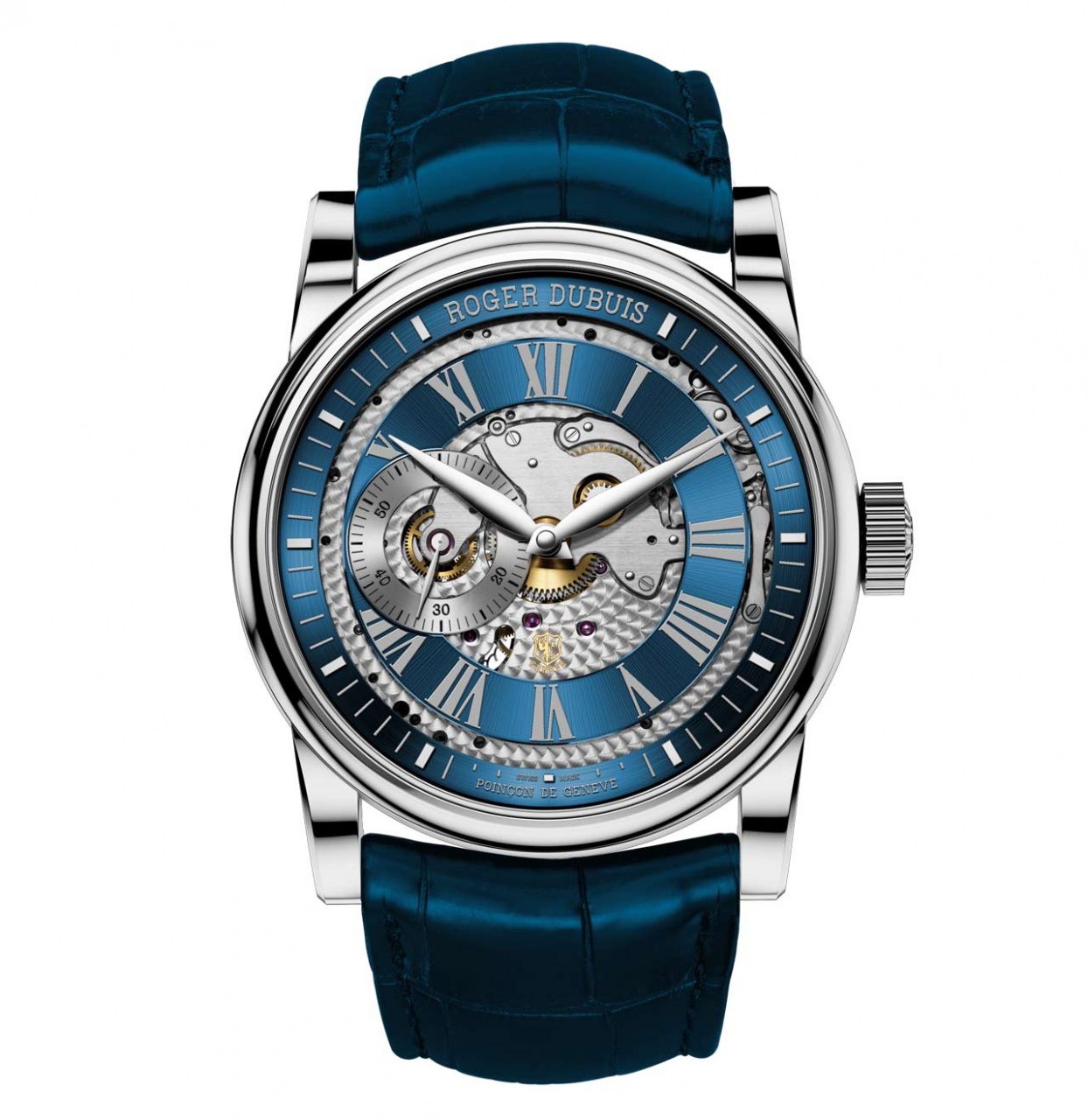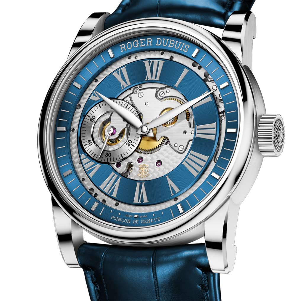Новая модель Hommage Open Dial от швейцарской часовой компании Roger Dubuis выполнена в двух вариантах: в 18-каратном белом золоте с синим циферблатом и в 18-каратном розовом золоте с белым циферблатом,.