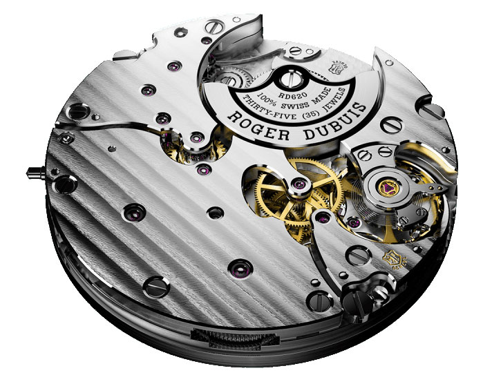 Круглый полированный корпус диаметром 42,0 мм. На торце рифленой заводной головки, расположенной на 3 часах, выгравирован логотип бренда Roger Dubuis. Сапфировое стекло установлено на передней стороне часового корпуса и на его задней крышке. Циферблат частично открытый, с двумя широкими кольцами: внутренним, размеченным римскими цифрами и периферийным, с минутной разметкой. Стрелки выполнены в листьевидной форме. Модель оснащена мануфактурным автоматическим механизмом Roger Dubuis RD620, состоящим из 184 деталей, толщиной 4,5 мм, на 35 камнях, с балансовой частотой 28800 полуколебаний в час (4 гц), микро-ротором автоподзавода, 52-часовым запасом хода, отрегулированным в пяти позициях, с функциями индикации часов, минут (посредством соответствующих центральных стрелок) и секунд (на соответствующем малом боковом циферблате, расположенном на 9 часах).