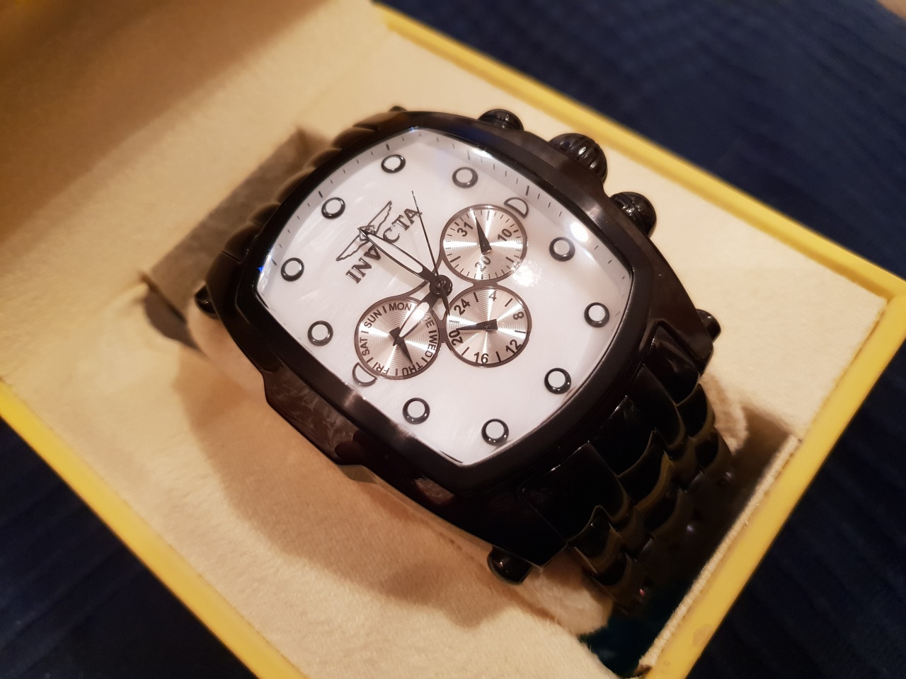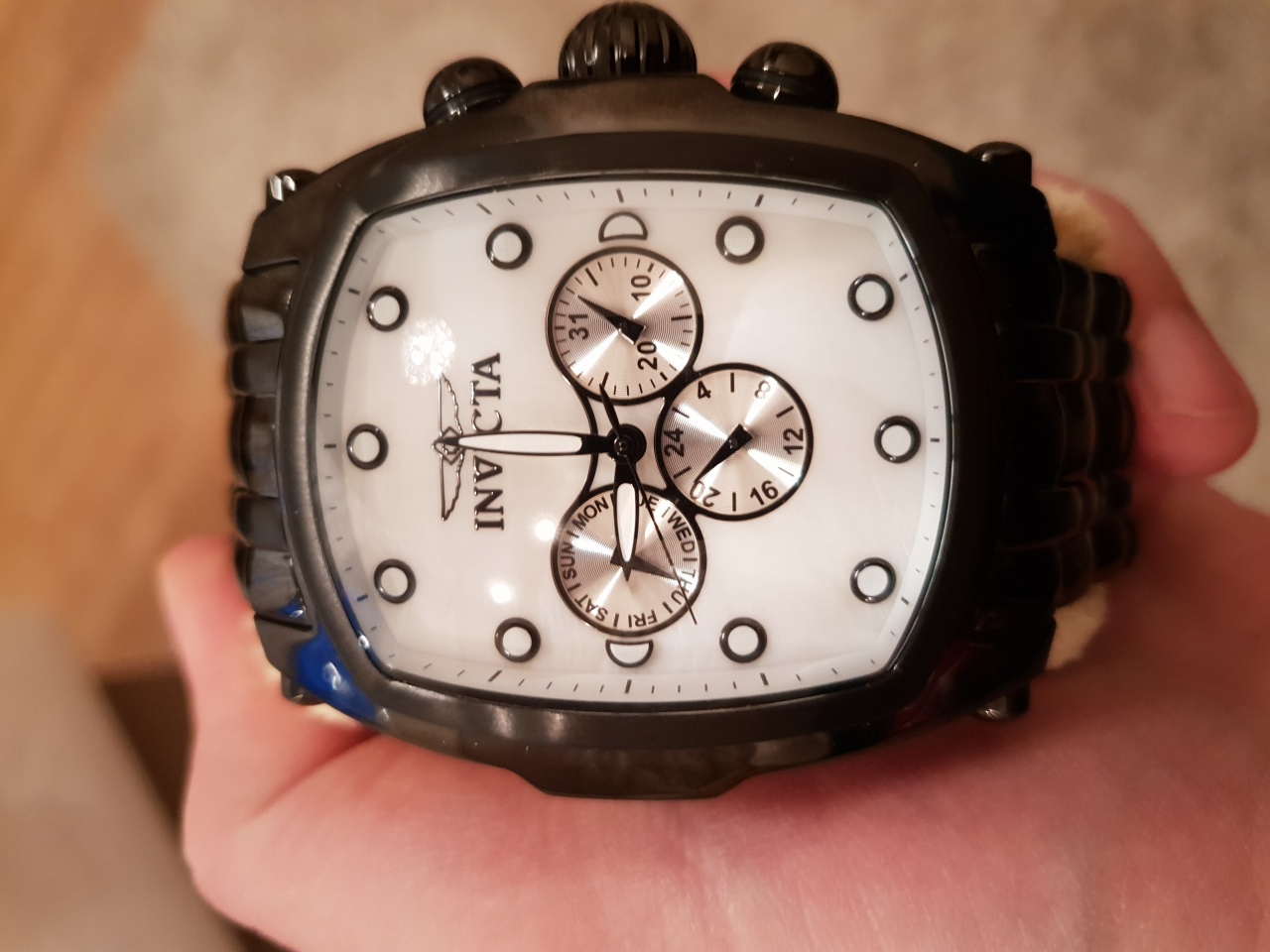 Интересный браслет с черным PVD, сочетние блестящих и матовых звеньев. Цифер - под перламутр. Люм довольно слабый. Механизм ISA 9238/1970 quartz, часы-минуты-секунды, + дата, день недели, суточник (или второй часовой пояс). Минеральное стекло.