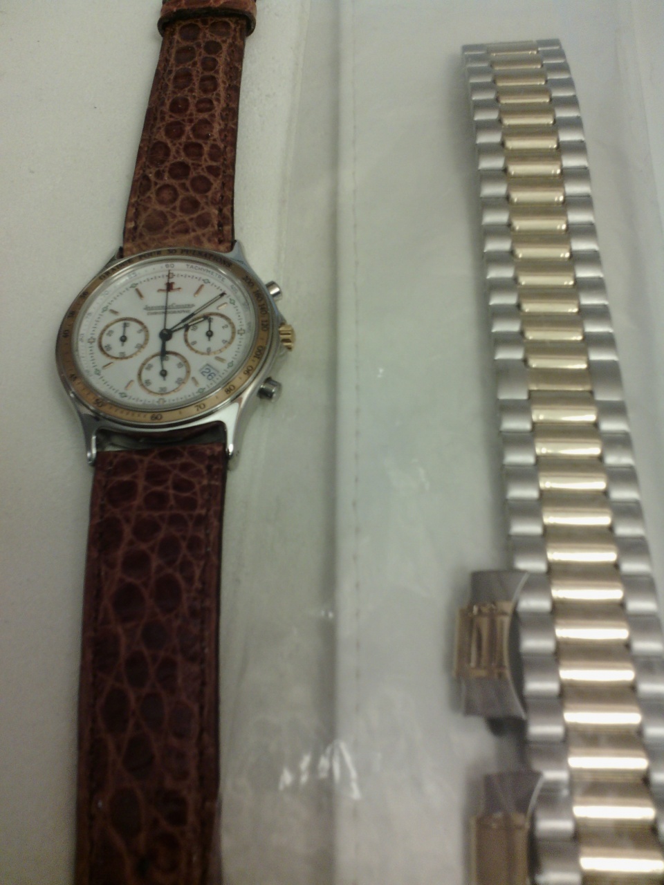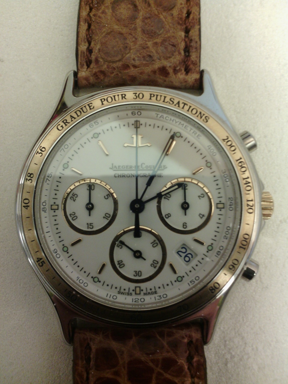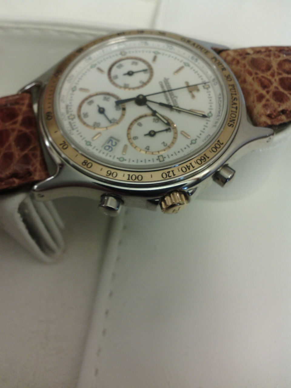 Культовый хронограф знаменитой швейцарской часовой мануфактуры JAEGER LeCOULTRE. Новый (NOS) в пленках... сталь/золото... типичный витринник... не носился... коробки .. документы.. полный набор... 100% оригинал... любые проверки... мануфактурный уникальный гибридный калибр JAEGER LeCOULTRE 631