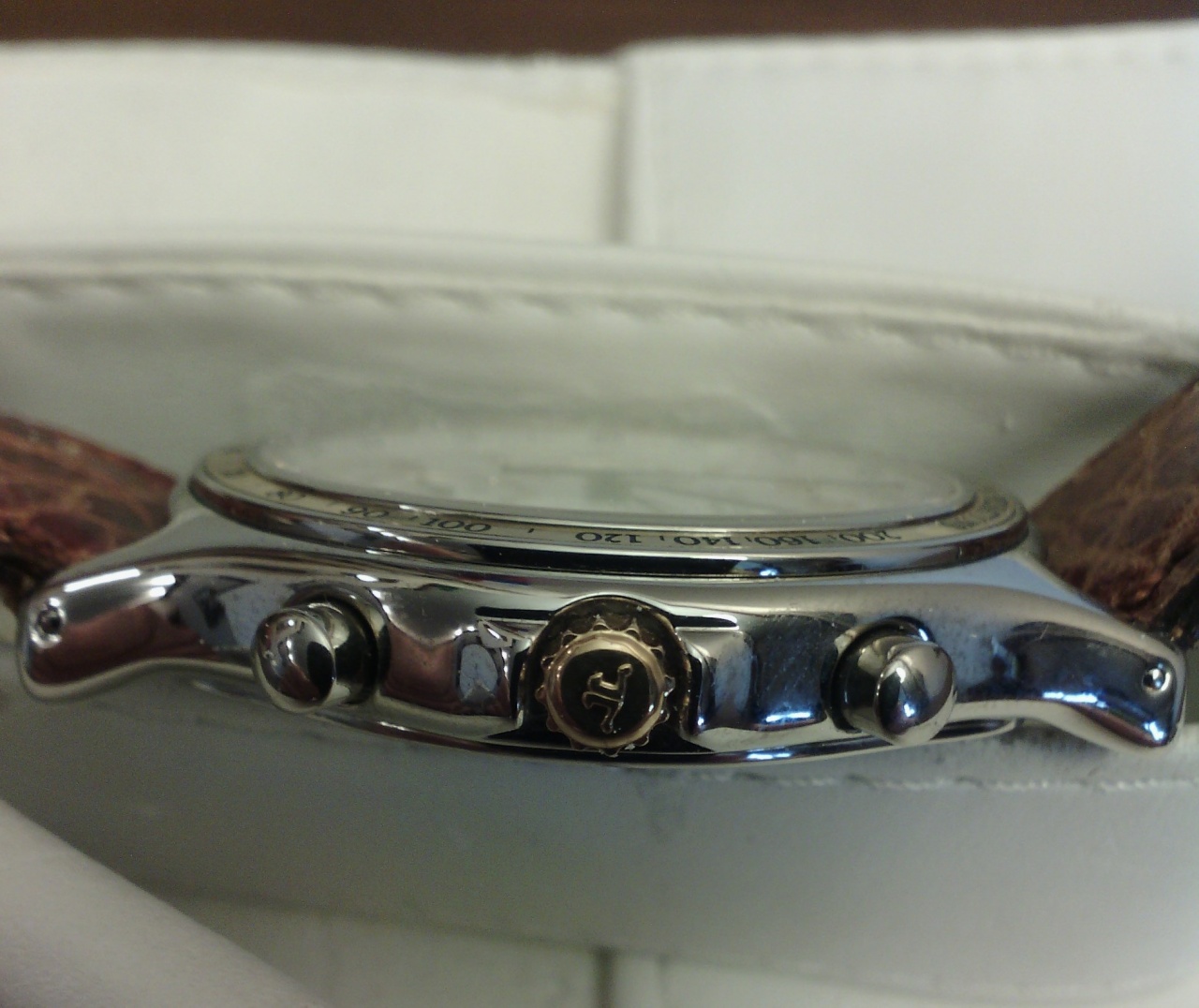 2 кварцевых движка с механическим модулем хронографа на 25ти камнях (231 деталь)... размер примерно 35х8 мм (без головки).. по дужкам 41 мм.. ремень 18мм... В подарок абсолютно новый, очень качественный и дорогой (119,00 €) браслет-резинка, идеально подходящий к часам...