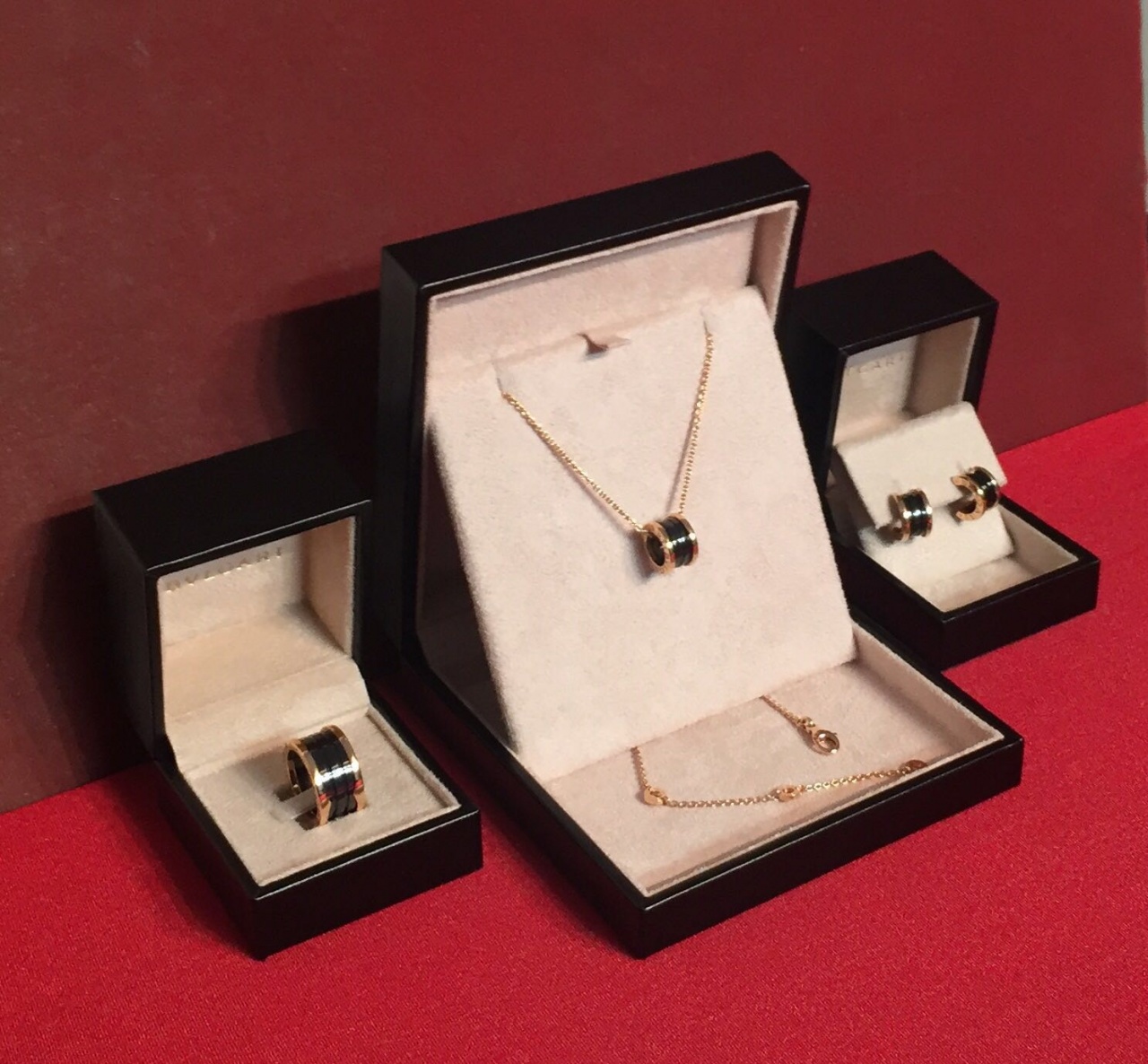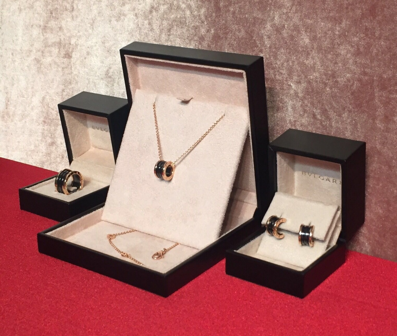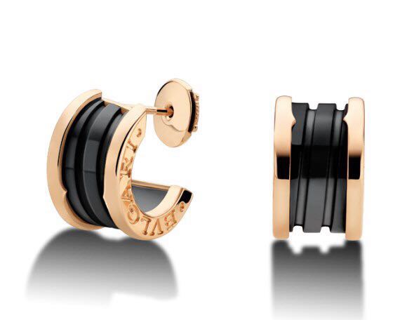 Комплект BVLGARI, коллекция B.ZERO1, розовое золото с чёрной керамикой