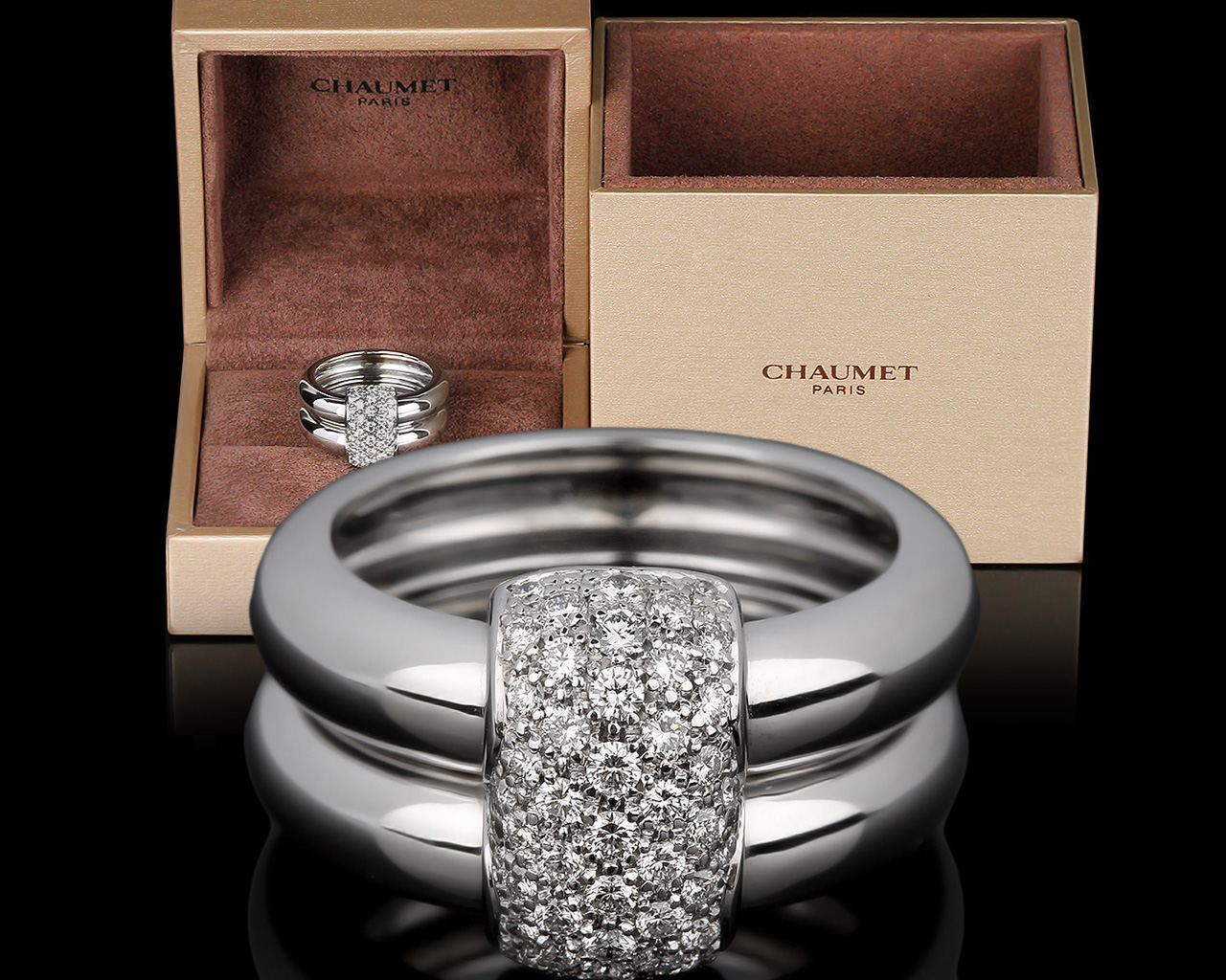 | chaumet, белое золото 750, кольцо с бриллиантами |