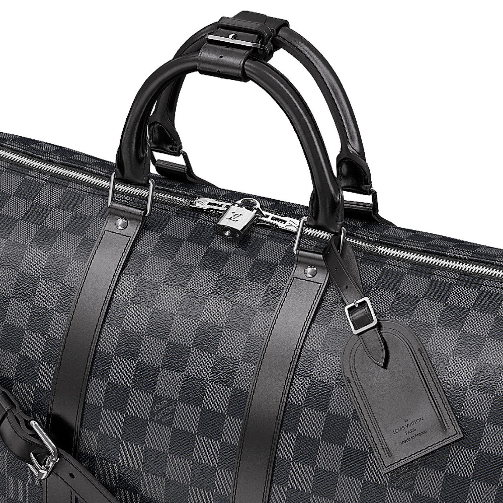 "Легендарная сумка Keepall, появившаяся в 1930 г., является олицетворением духа современных путешествий. Легкая и мягкая сумка готова немедленно отправиться в путешествие и полностью оправдывает свое название: эксперты искусства упаковки смогут легко сложить во вместительную сумку Keepall 55 (которая соответствует нормам размеров ручной клади) гардероб на неделю. Эта урбанистическая дорожная сумка из канвы Damier Graphite является новой интерпретацией классического дизайна."