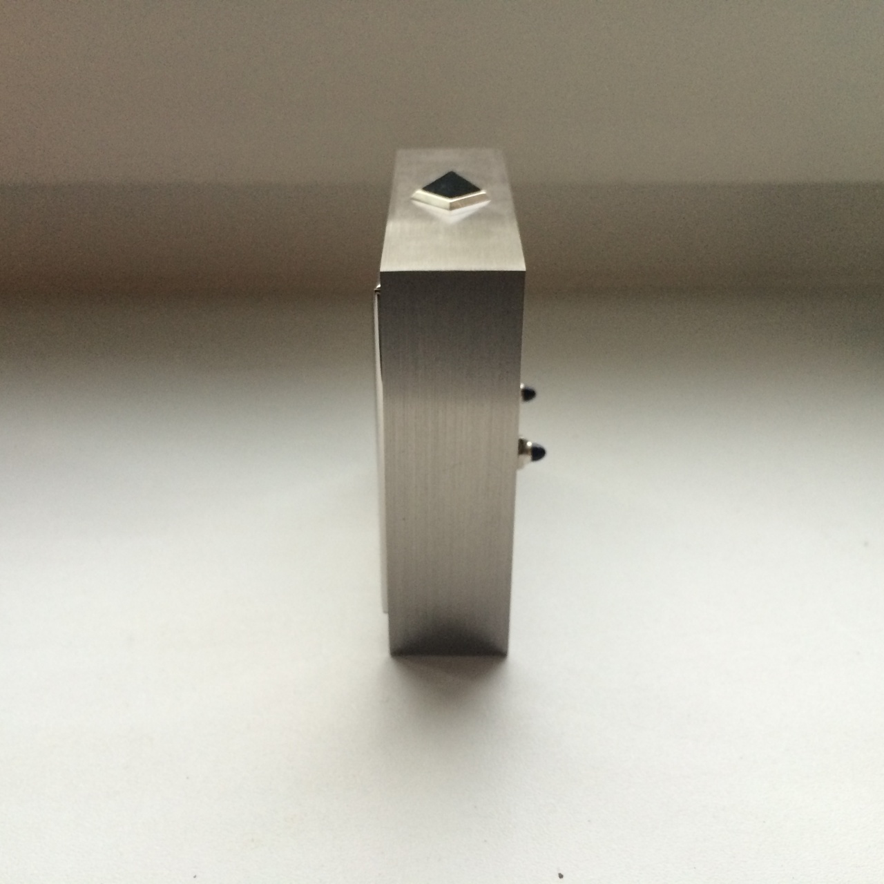 Square Cushion Palladium Finish Desk Travel Alarm with Onyx Cabochon Limited Edition