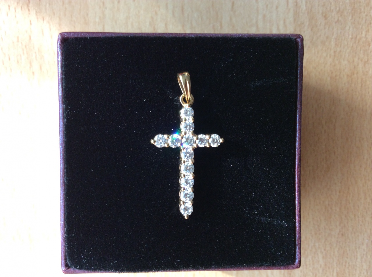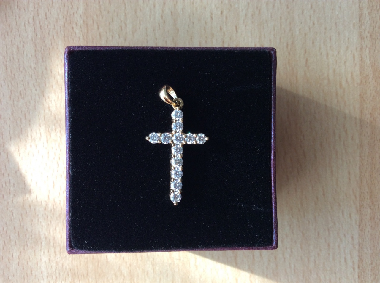 НОВЫЙ КРАСИВЫЙ ЖЕНСКИЙ ЗОЛОТОЙ КРЕСТ (750 пр.) С БРИЛЛИАНТАМИ. КЛАССИКА.