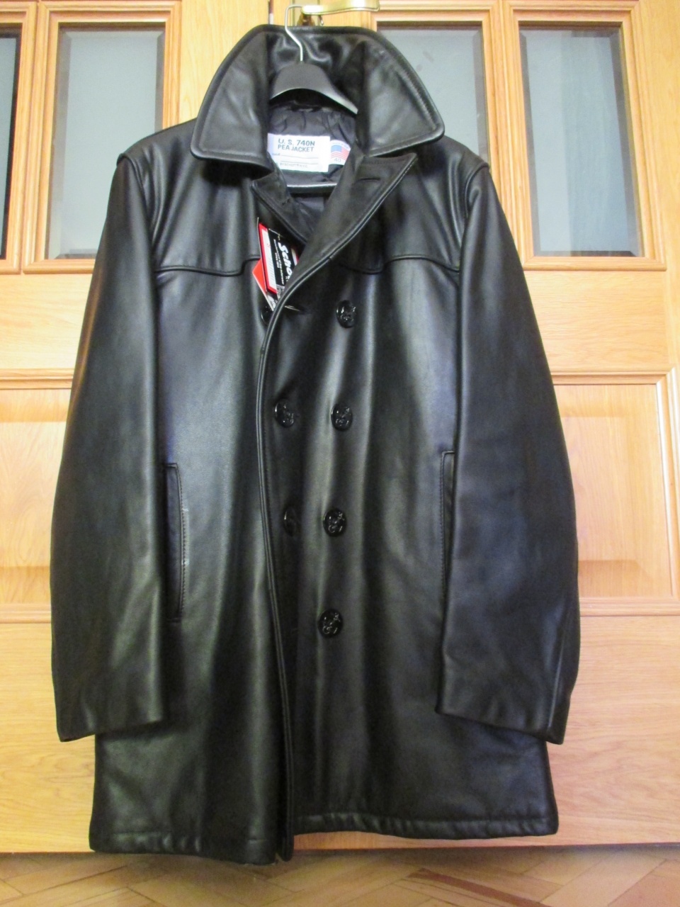 Предлагаю Вашему вниманию знаменитый новый кожанный двубортный бушлат черного цвета Schott NYC (США). Это удлиненная версия бушлата (она перекрывает полностью длину пиджака (т.е. можно носить под костюм!).